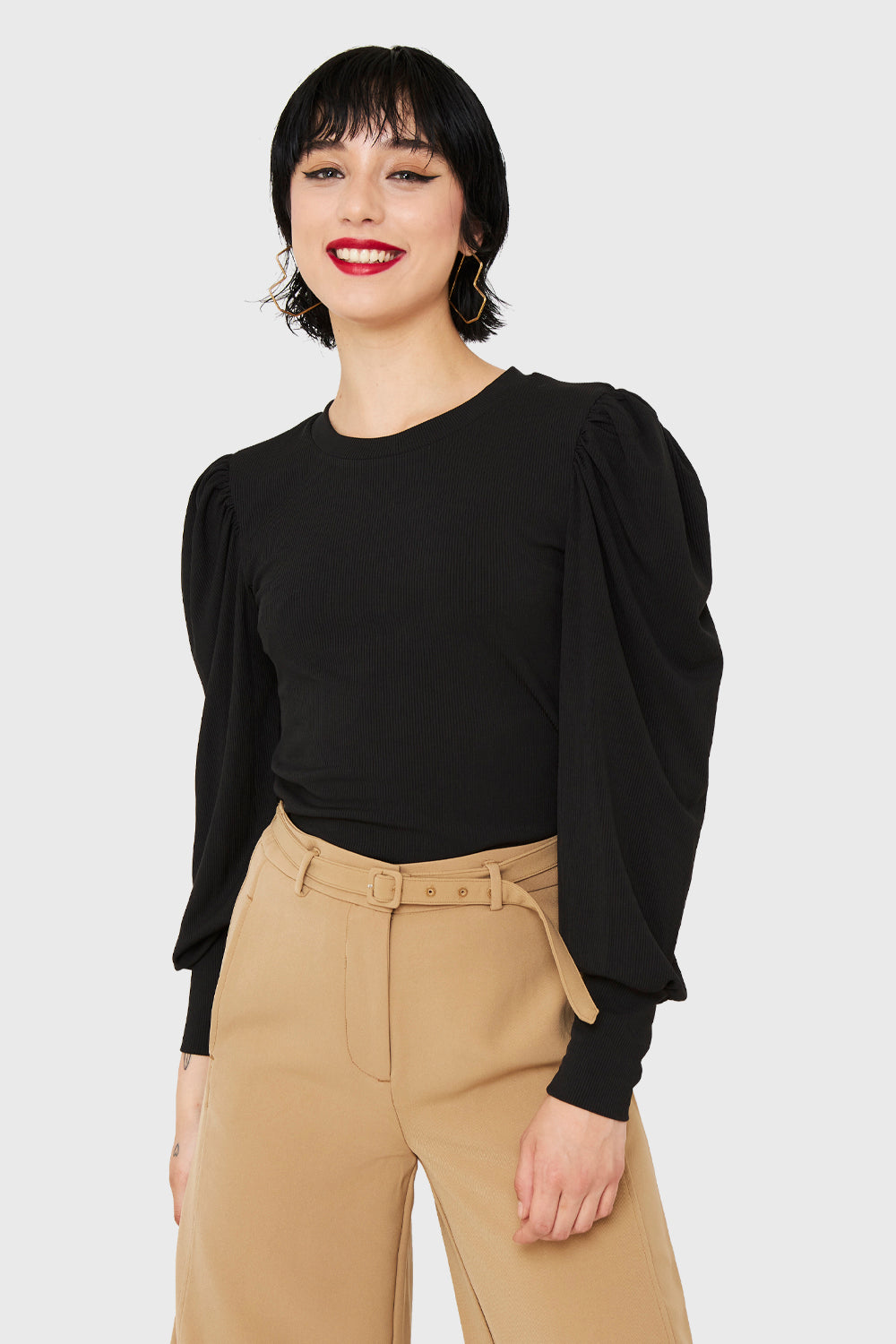 Características: Polera acanalada manga larga tipo princesa. Posee hombreras. Cuello redondo.