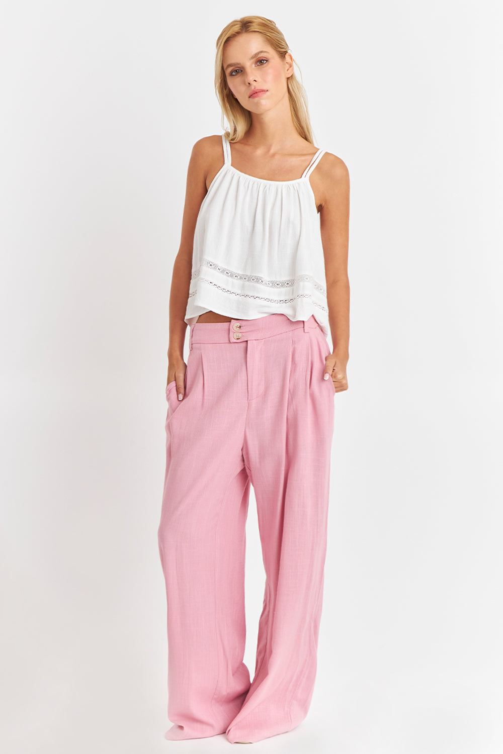 Características: Polera blanca de tiras delgadas, con detalle de botones funcionales en la espalda.