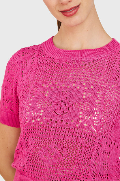 Polera Calada Tipo Tejida Fucsia