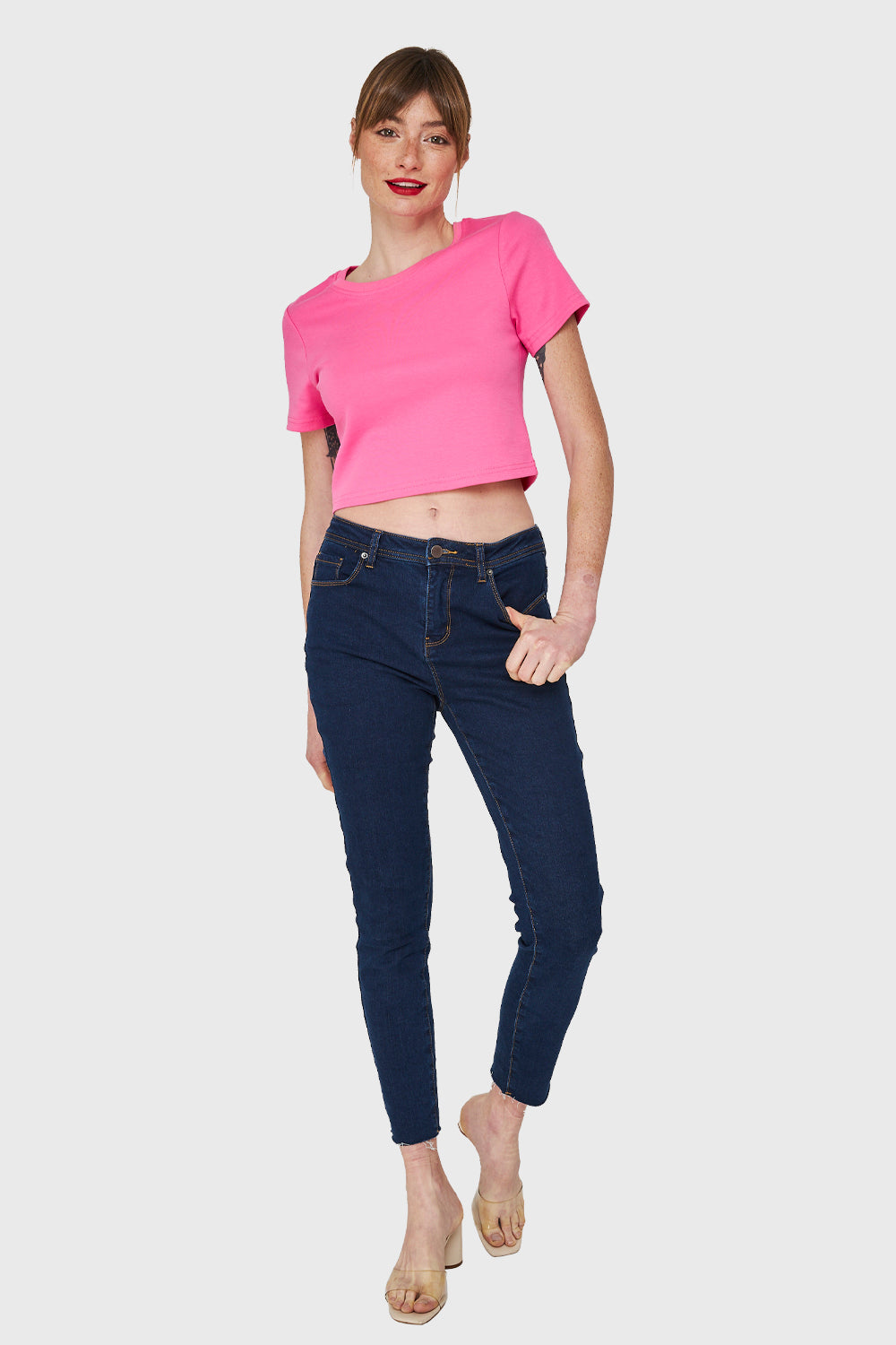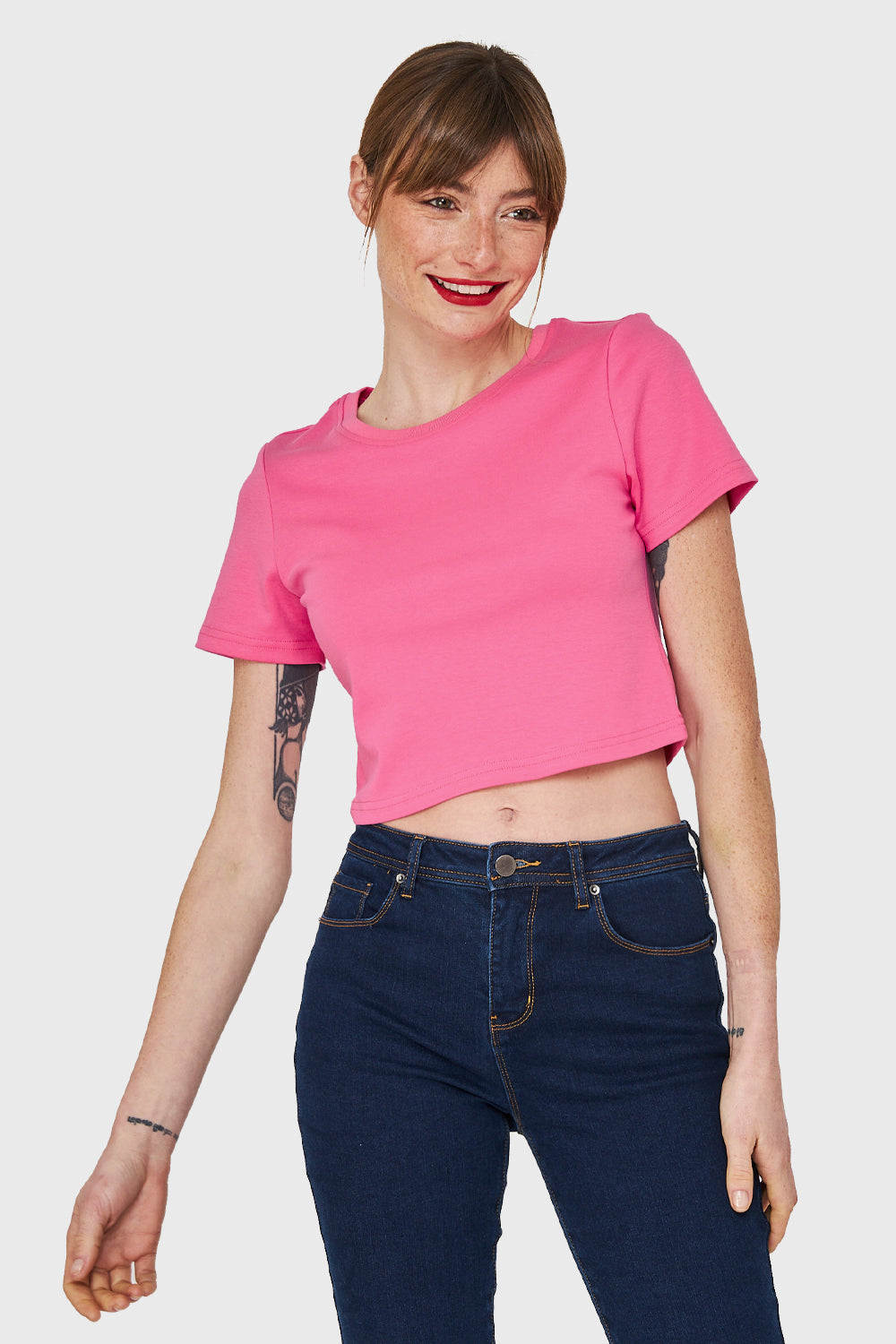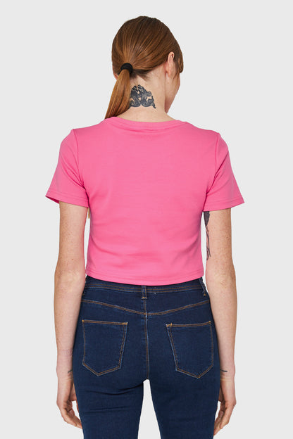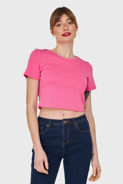 Polera Crop Básica Manga Corta Fucsia