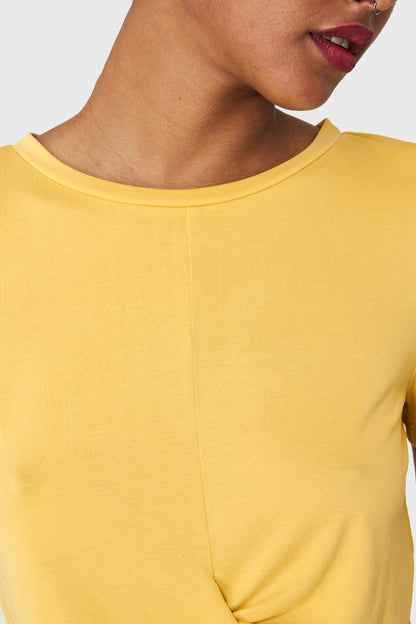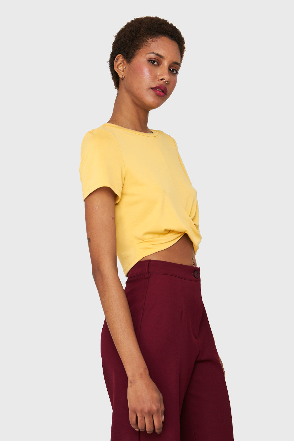 Características: Polera crop manga corta y cuello redondo con nudo frontal.