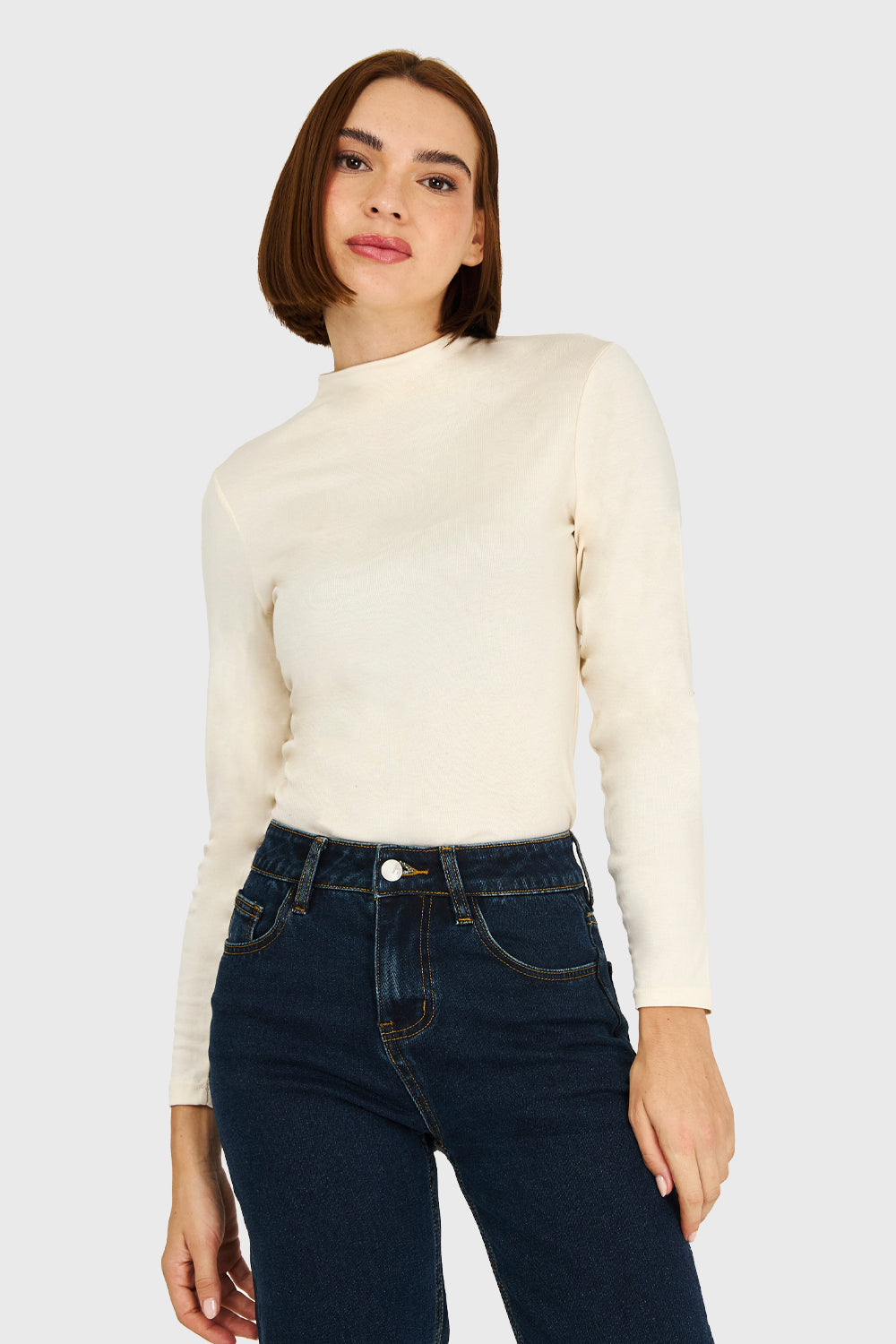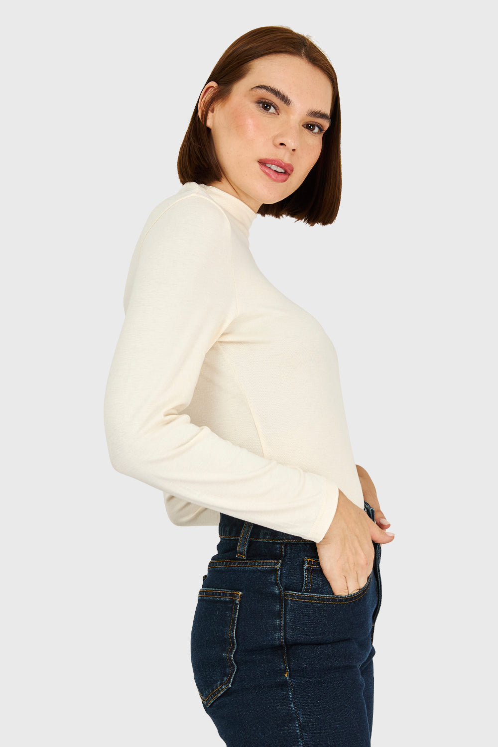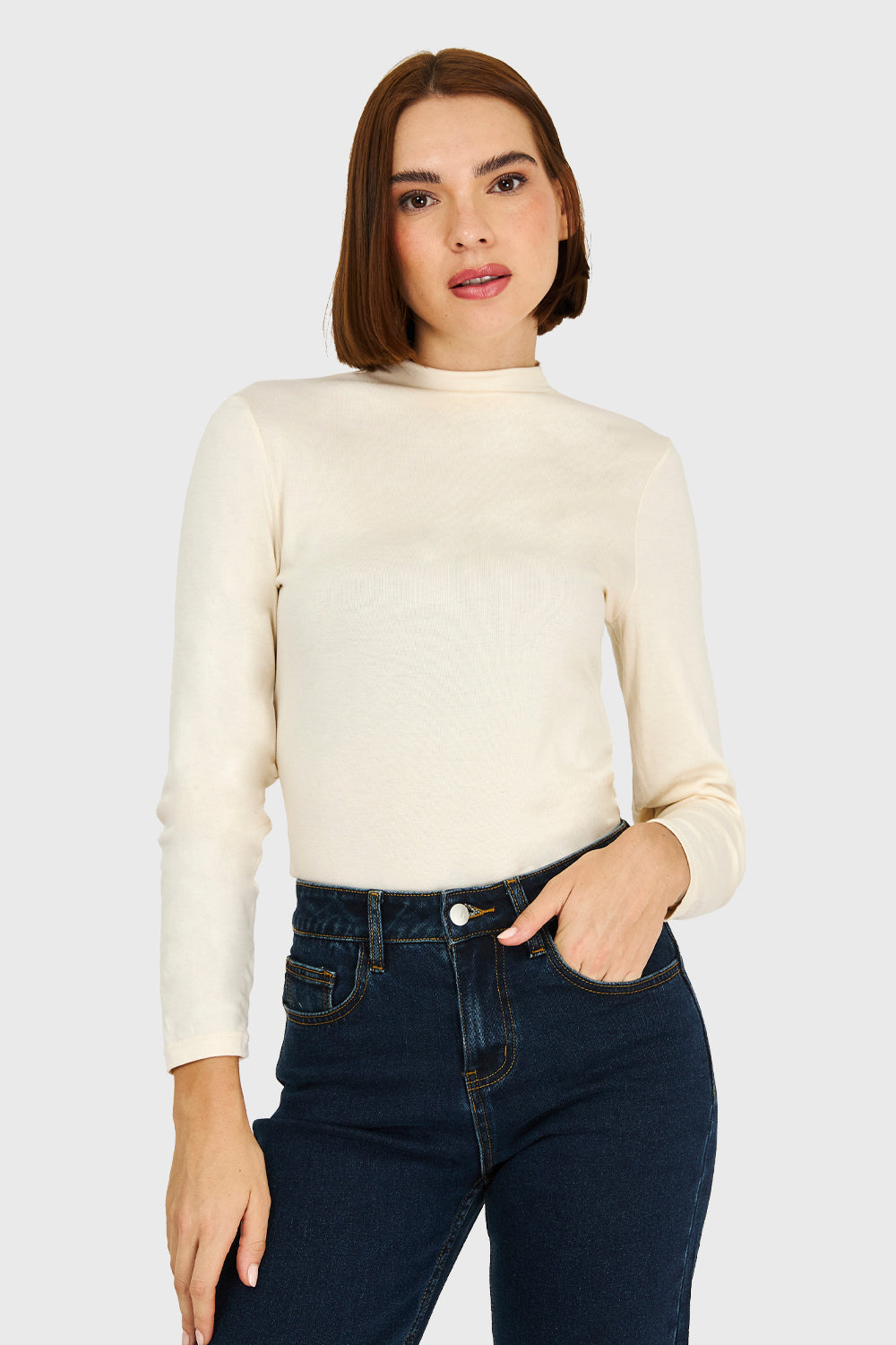 Características: Polera básica manga larga. Cuello mock. Elasticada.