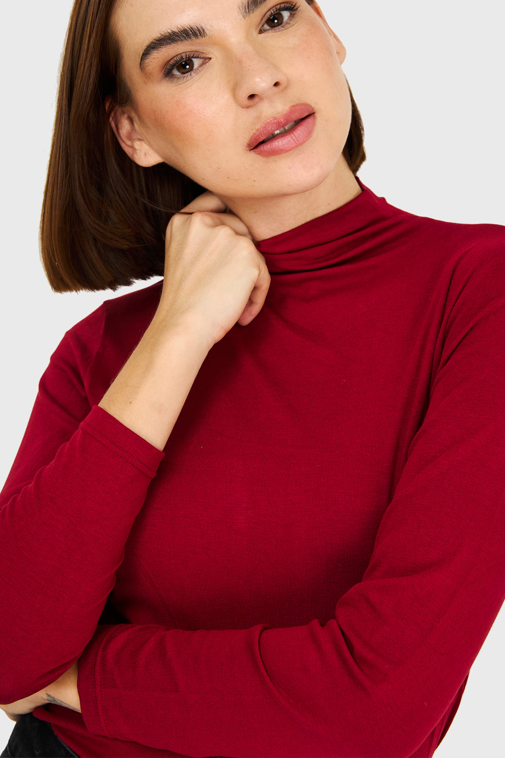 Características: Polera básica manga larga. Cuello mock. Elasticada.