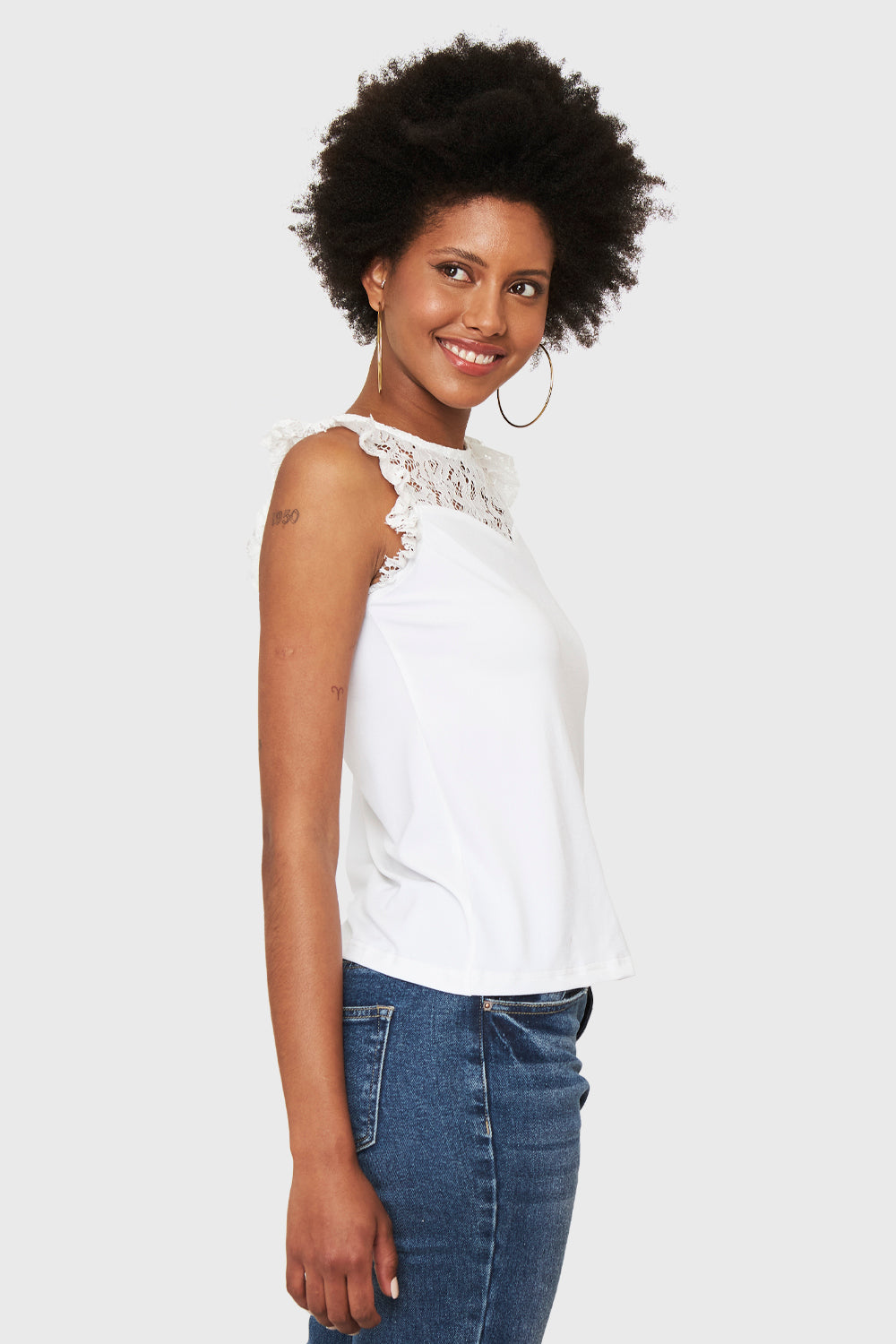 Características: Polera básica sin manga. Canesú de encaje. Broche de ajuste en espalda.