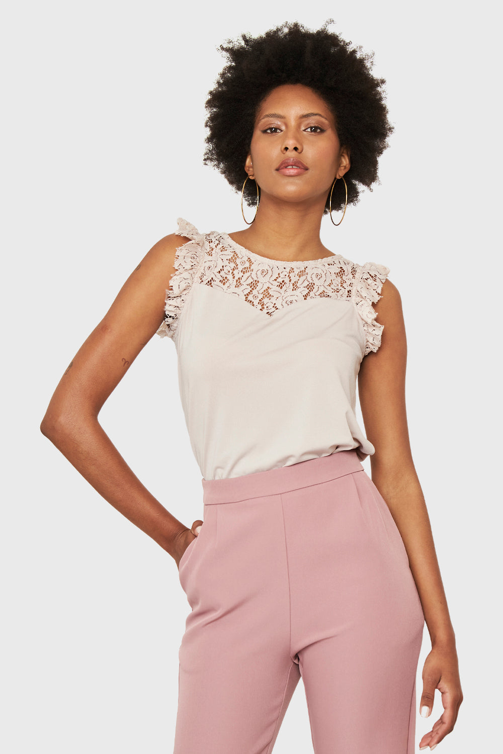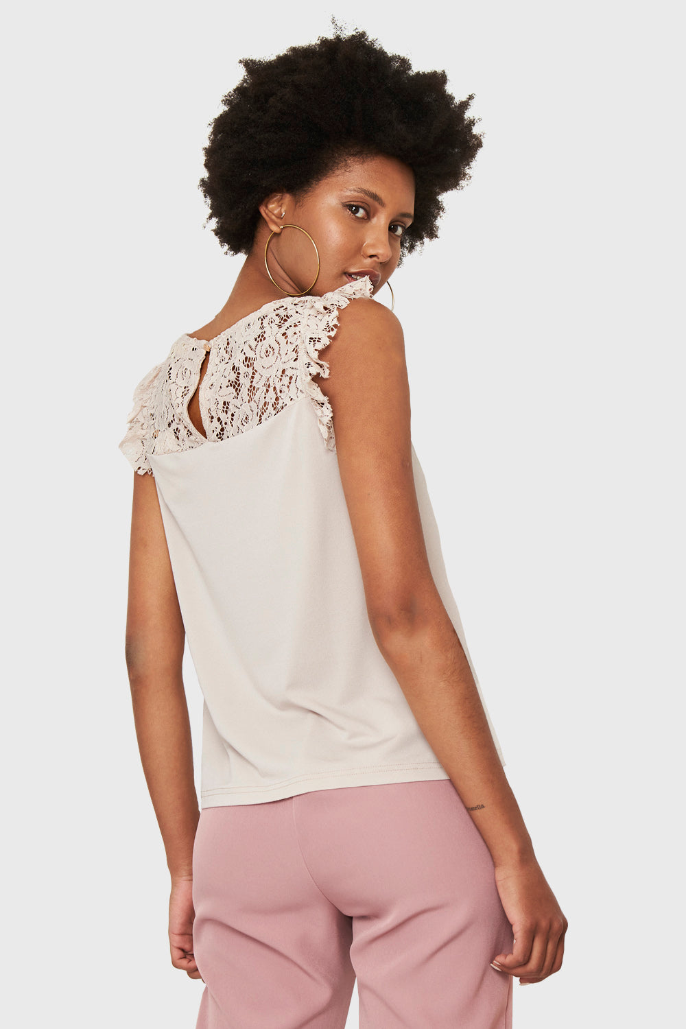Polera Encaje Canesú Nude