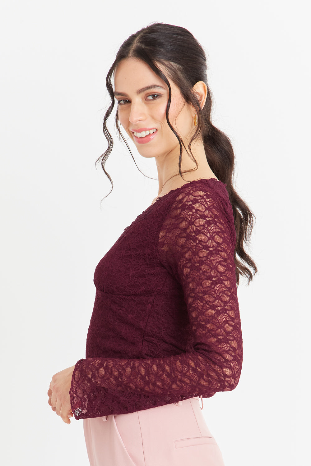 Características: Polera encaje elasticada con forro. Cuello en V.