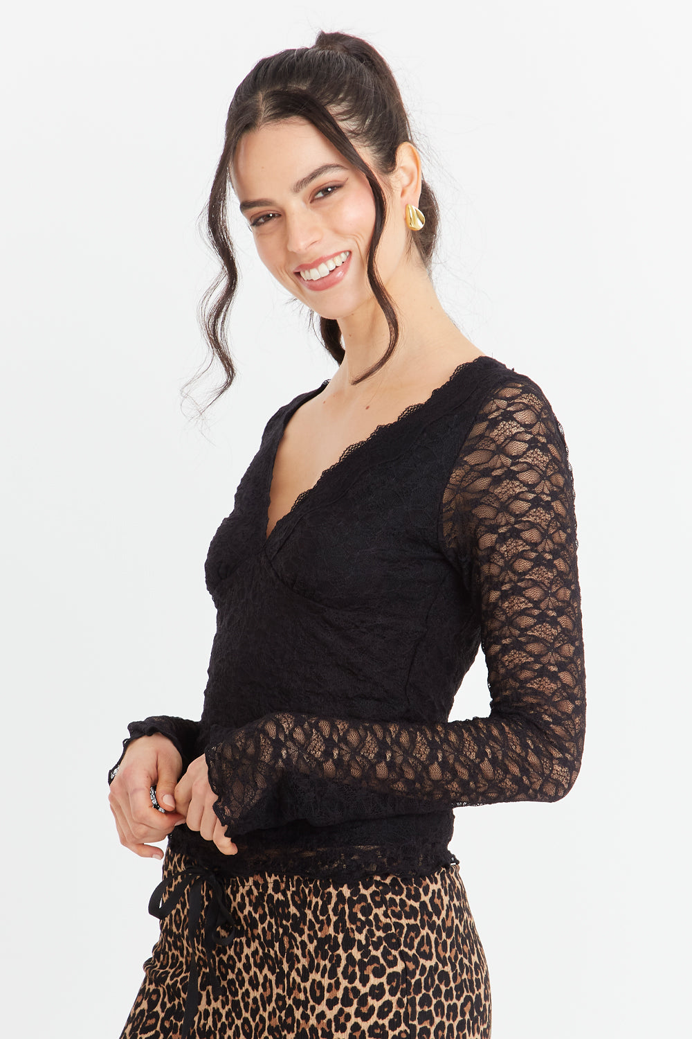 Características: Polera encaje elasticada con forro. Cuello en V.