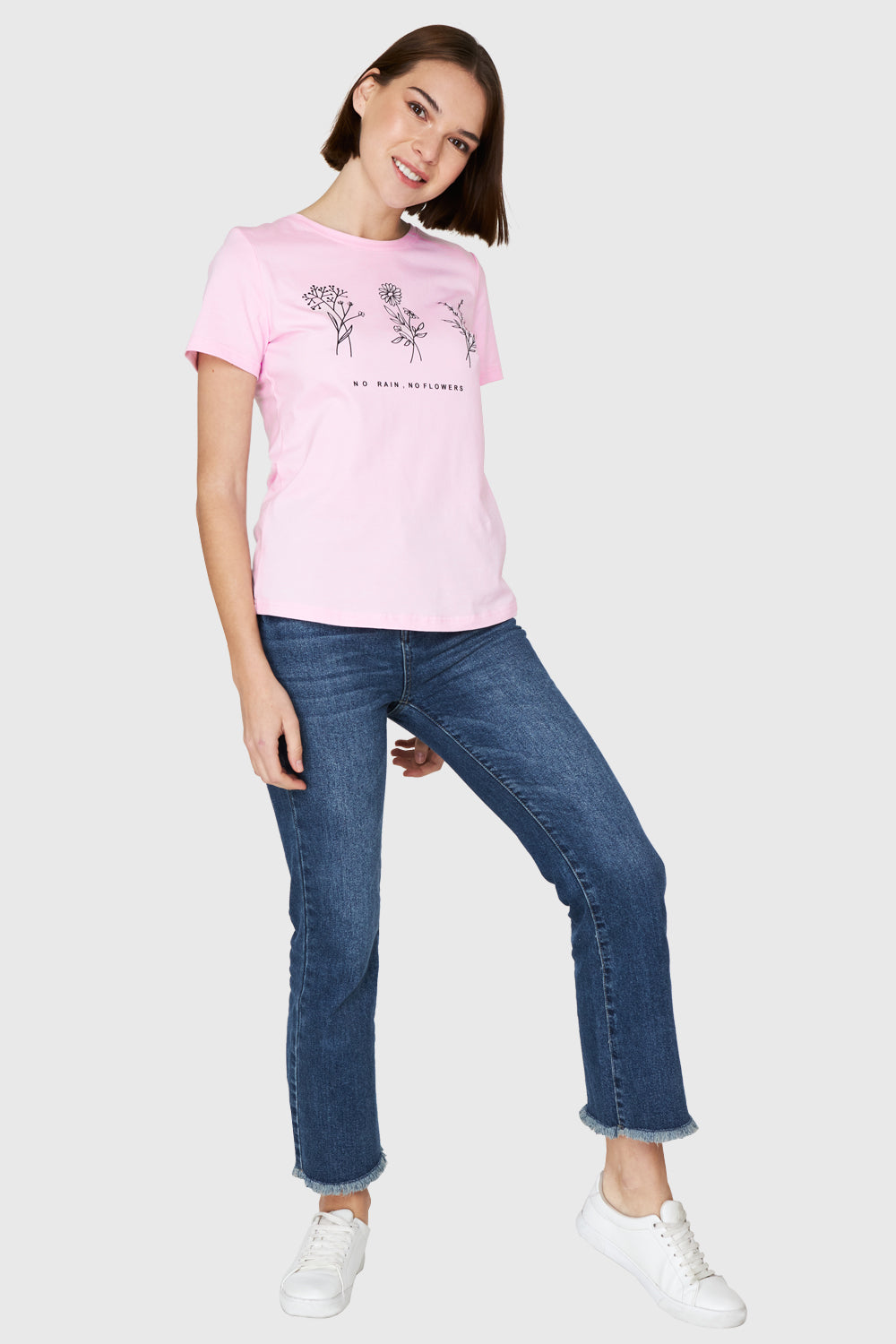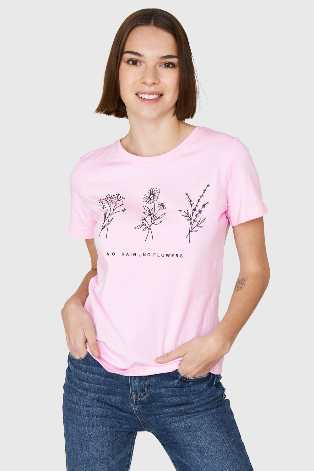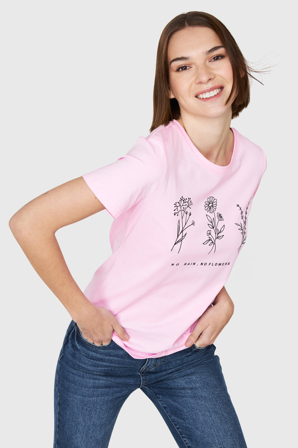 Características: Polera manga corta y cuello redondo. Estampado de flores.