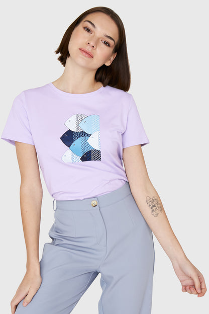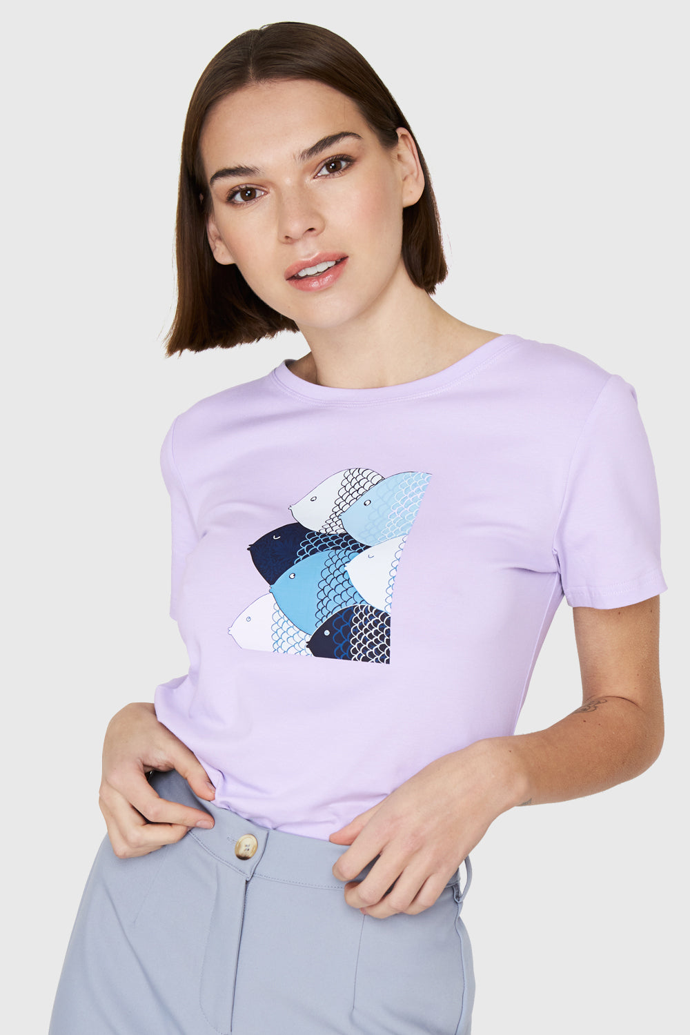 Características: Polera manga corta y cuello redondo. Estampado de peces.