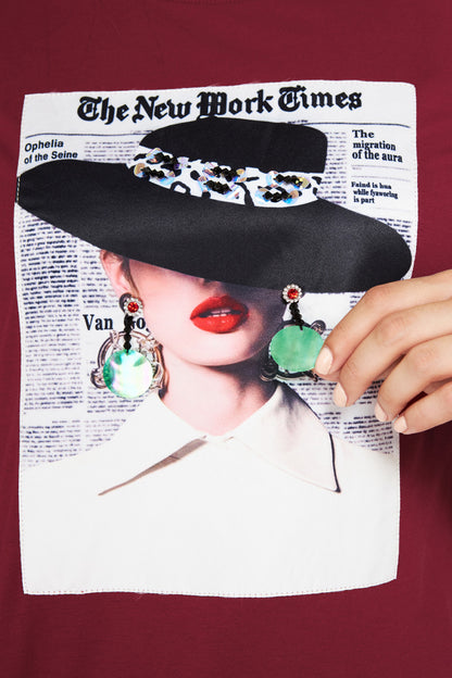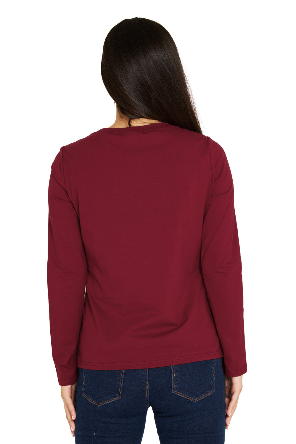 Características: Polera manga larga. Cuello redondo. Estampado con aplicaciones de lentejuelas y mostacillas.