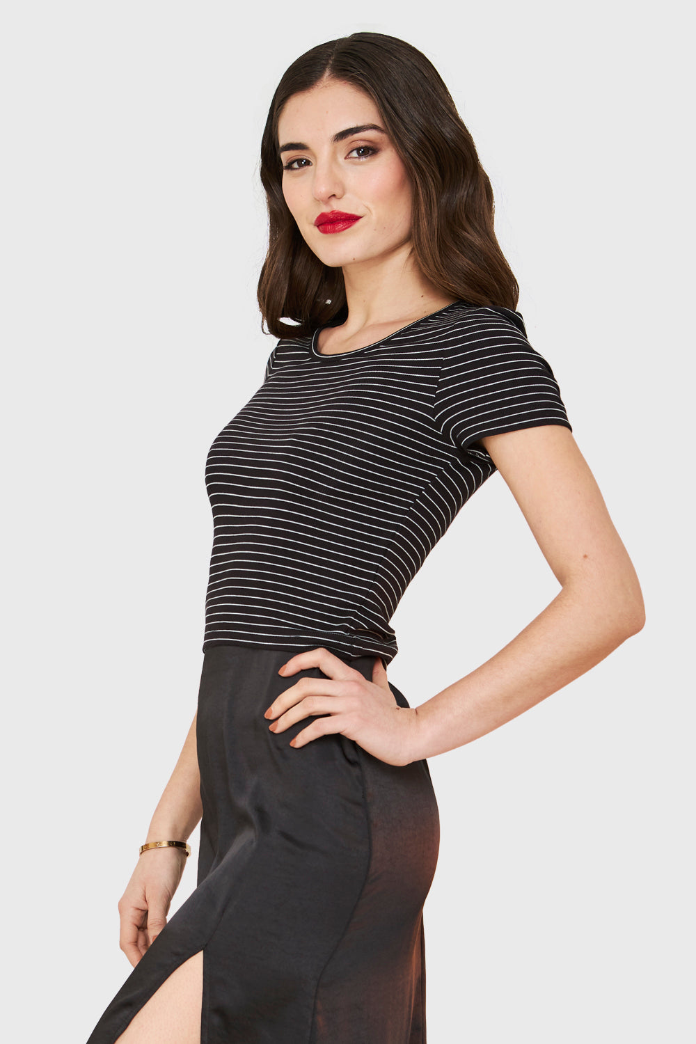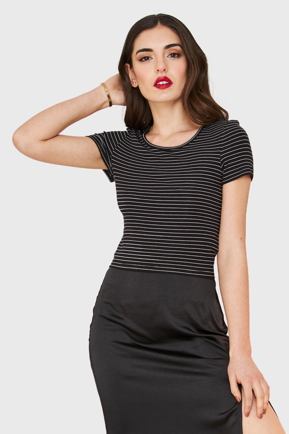 Polera Manga Corta Rayas Negro