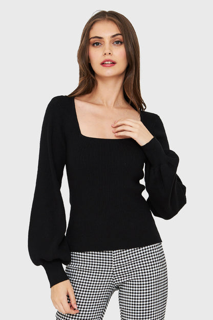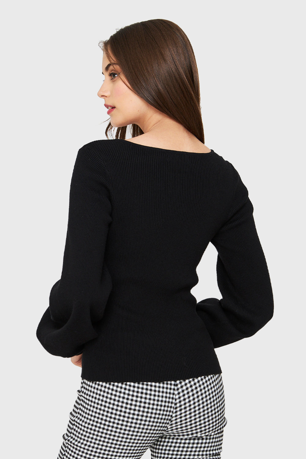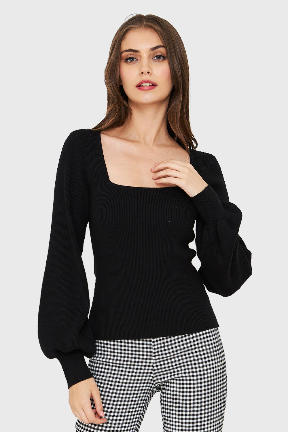Características: Polera escote cuadrado con manga globo. Tejido acanalado con textura suave.