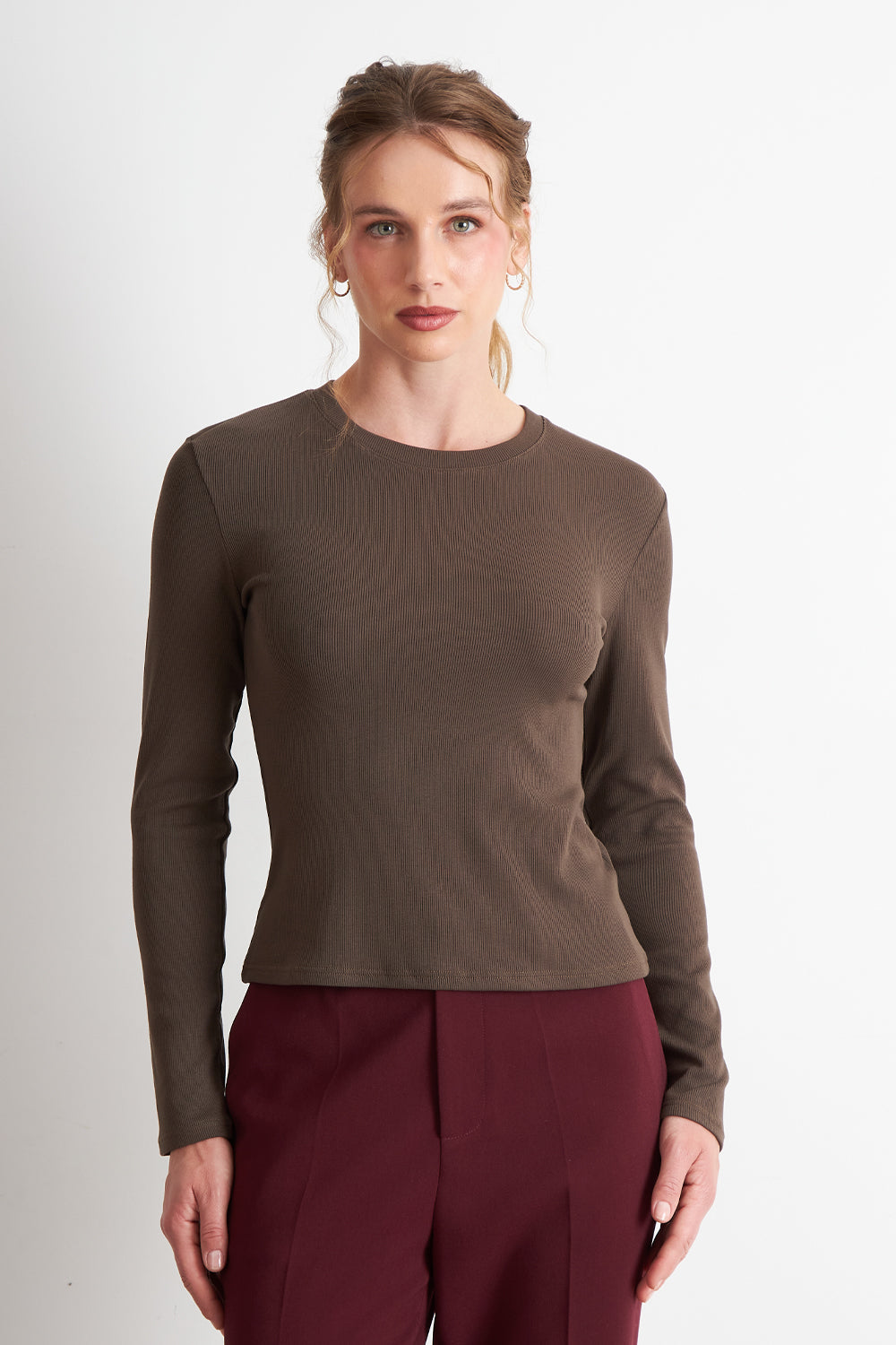 Características: Polera básica manga larga con cuello redondo, Interior de polar.