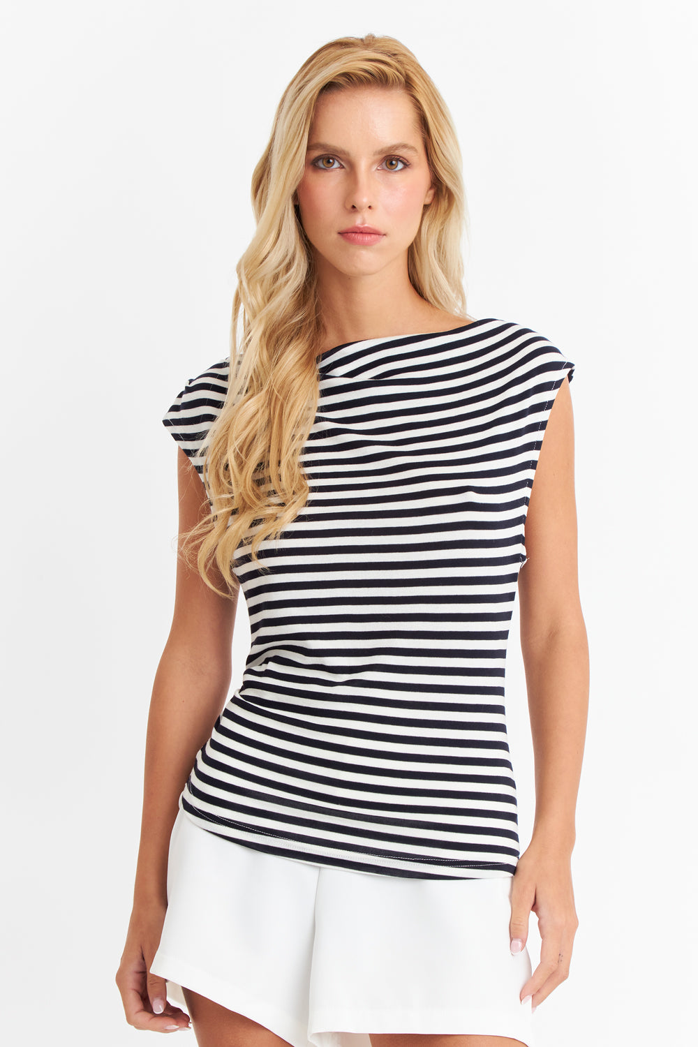 Polera Rayas Cuello Bote Blanco