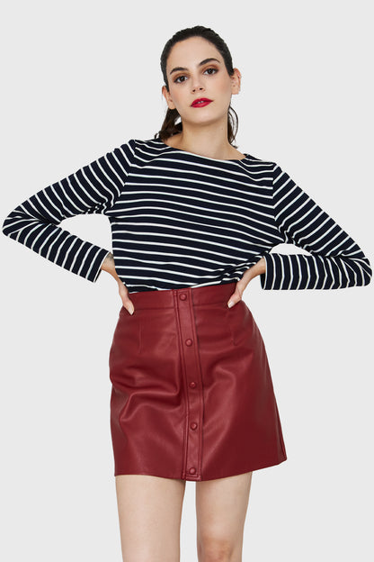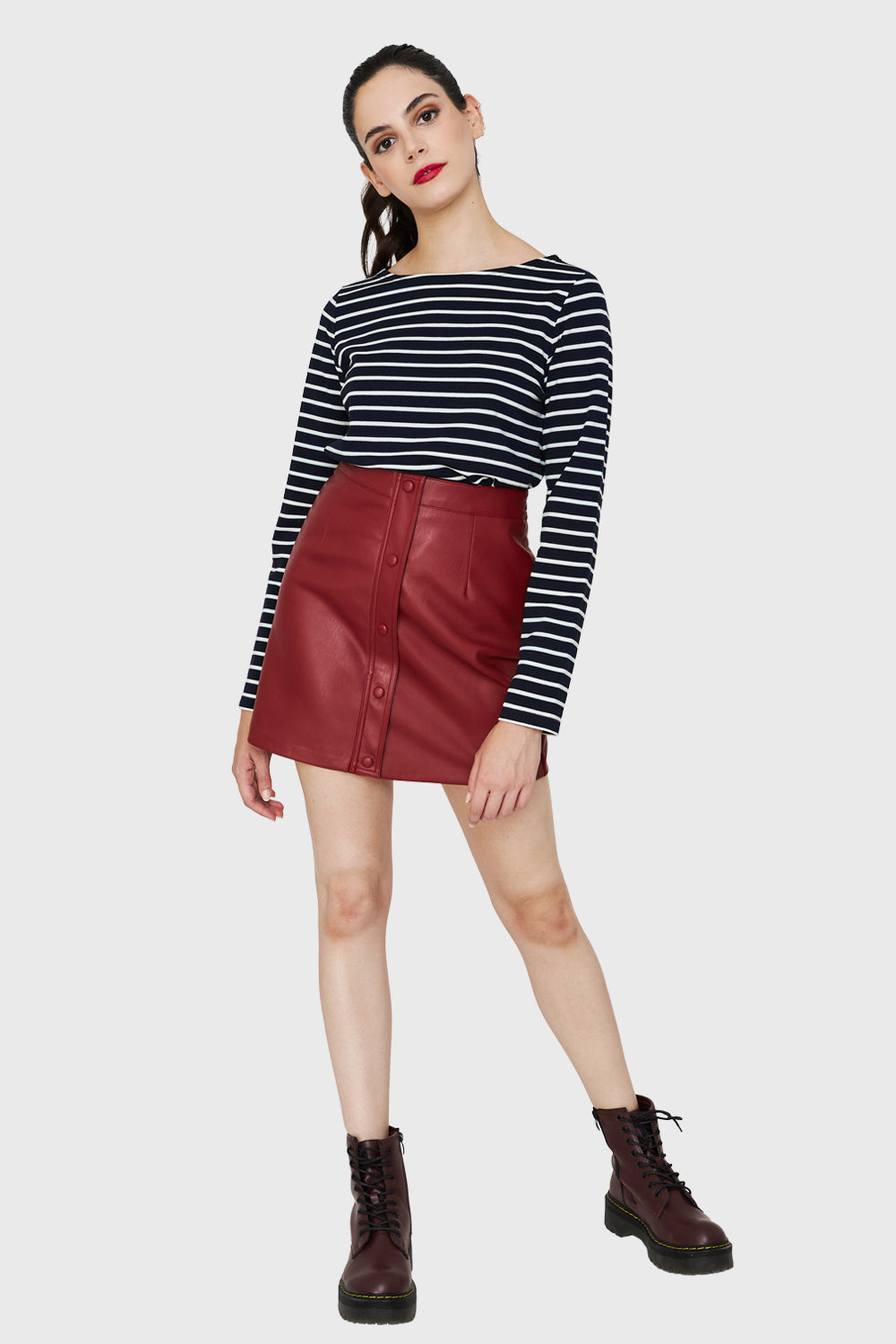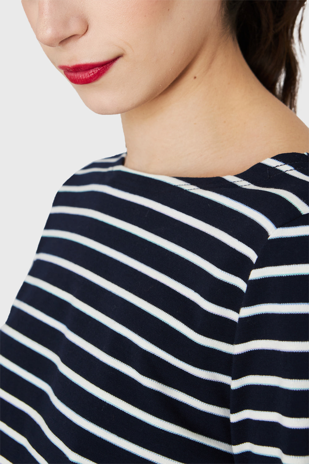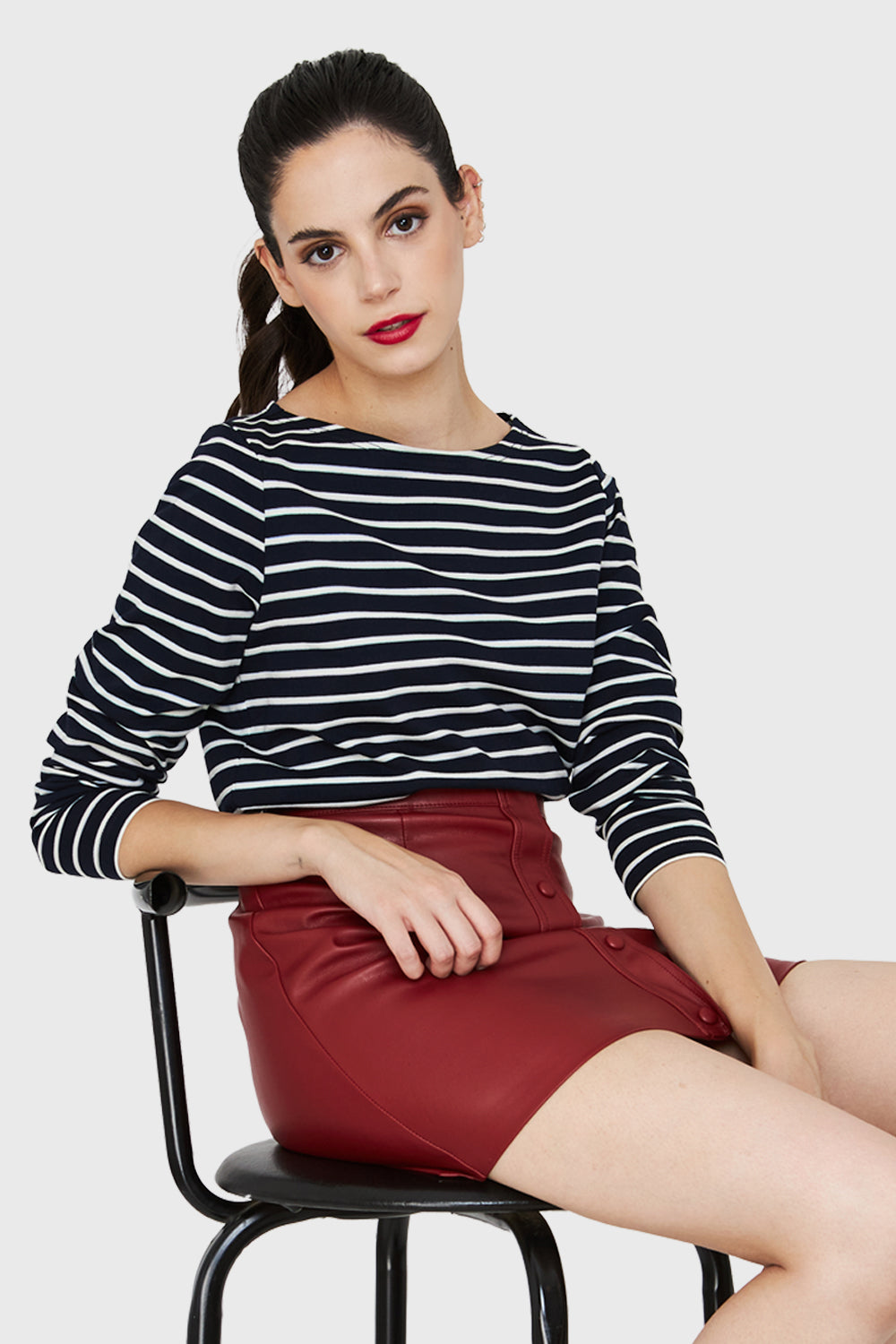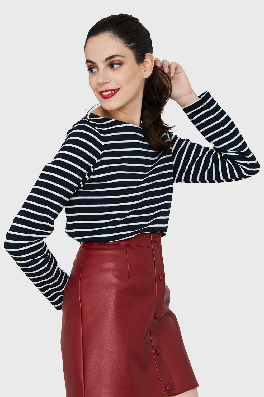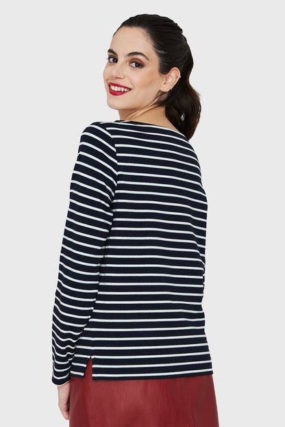 Características: Polera rayas estilo marinero cuello bote con mini tajos laterales.