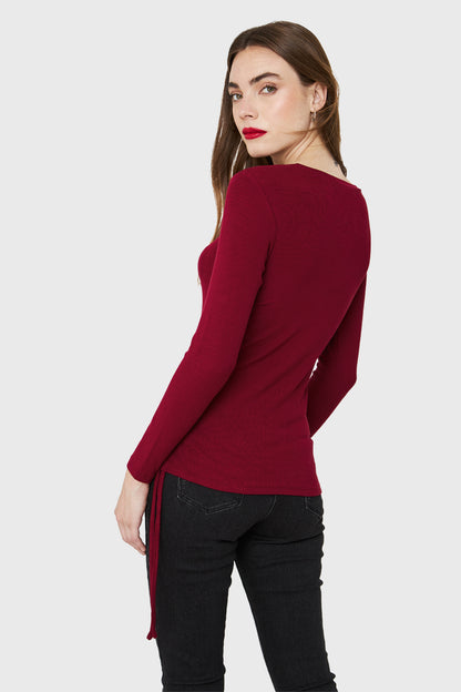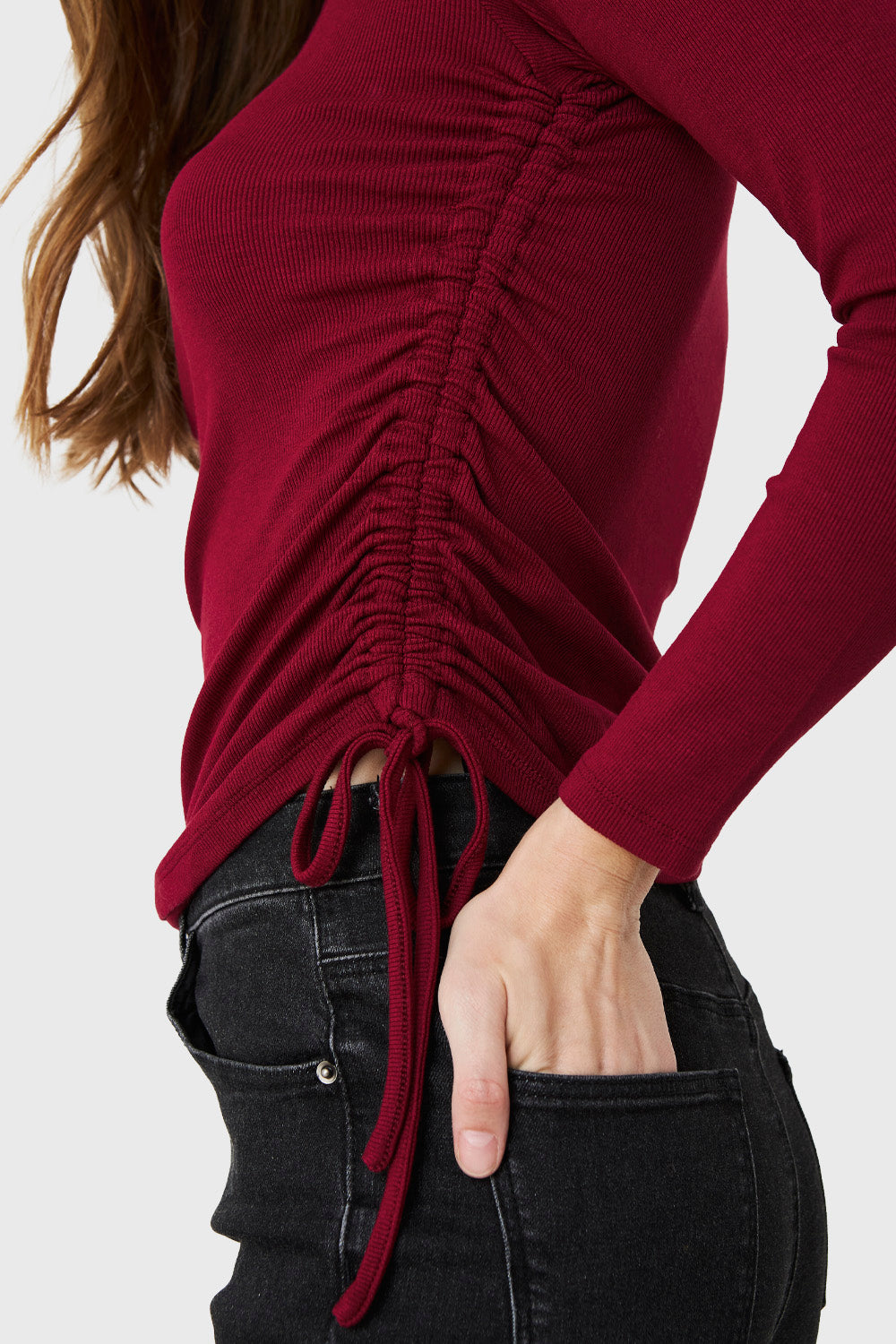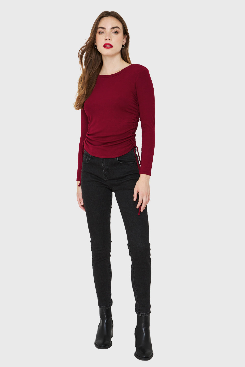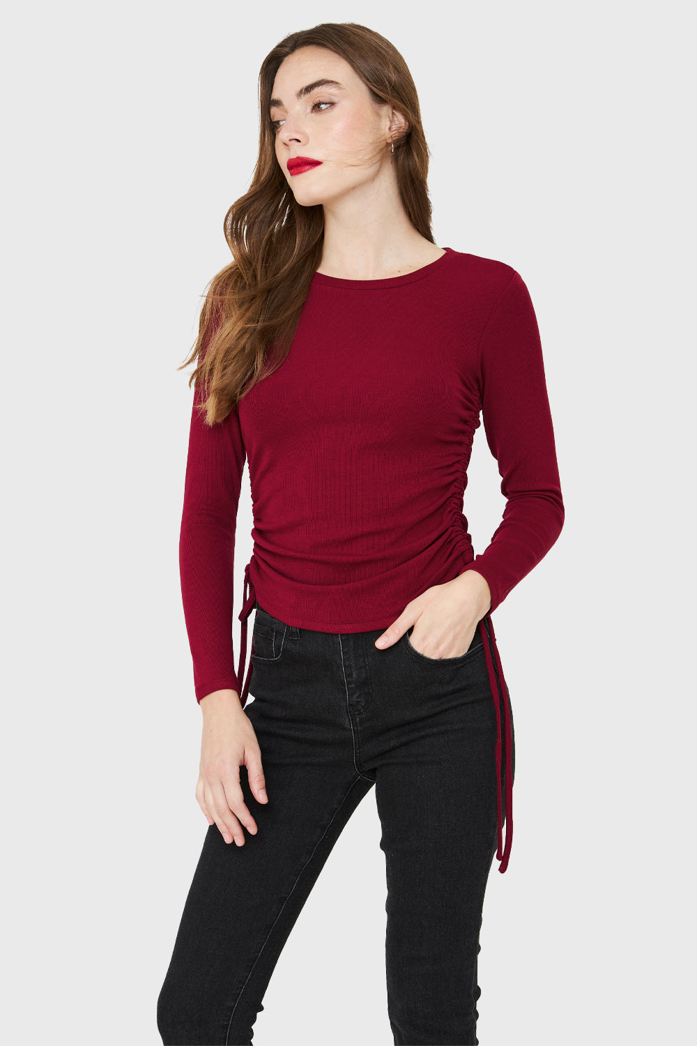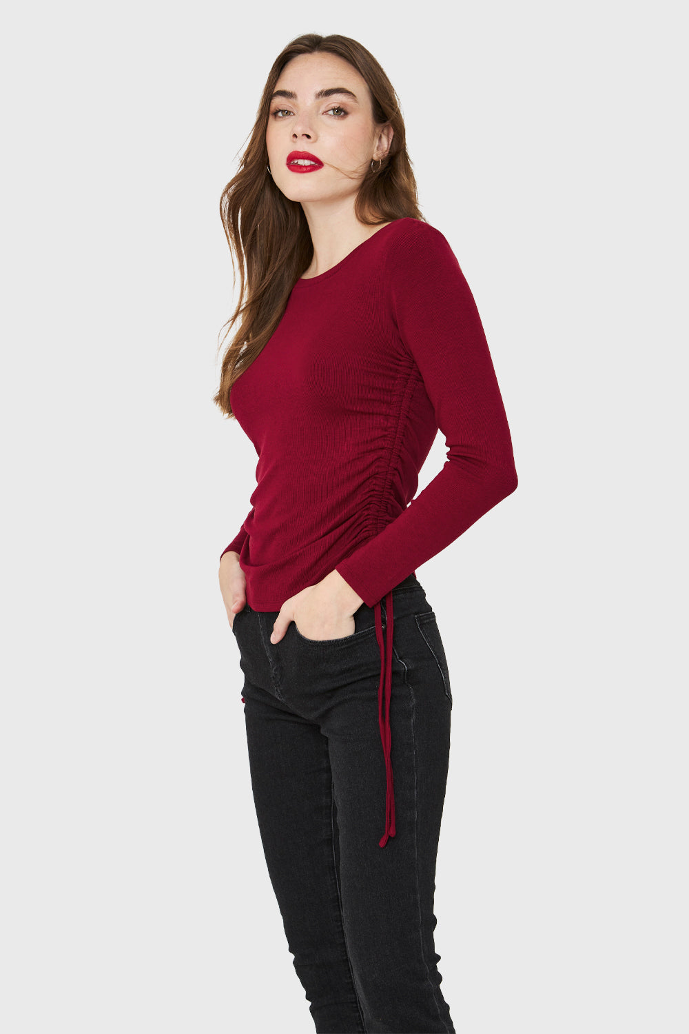 Características: Polera manga larga y cuello redondo. Con recogidos en los laterales ajustables a través de un cordón.