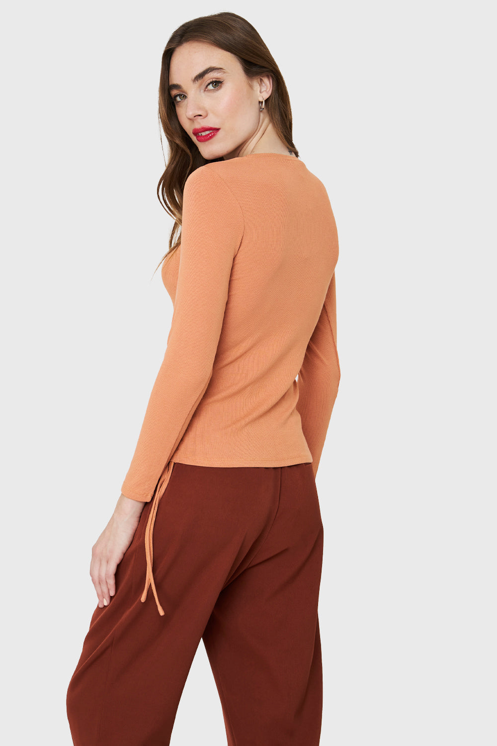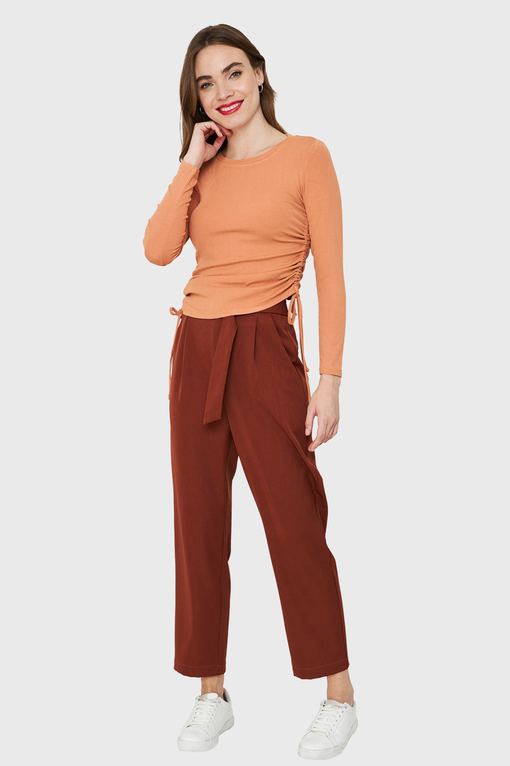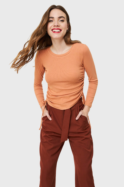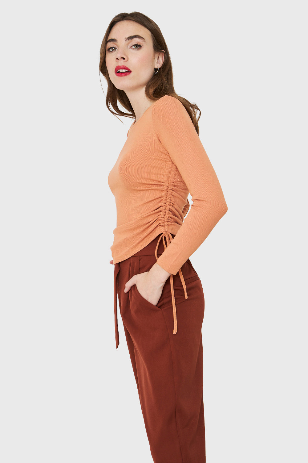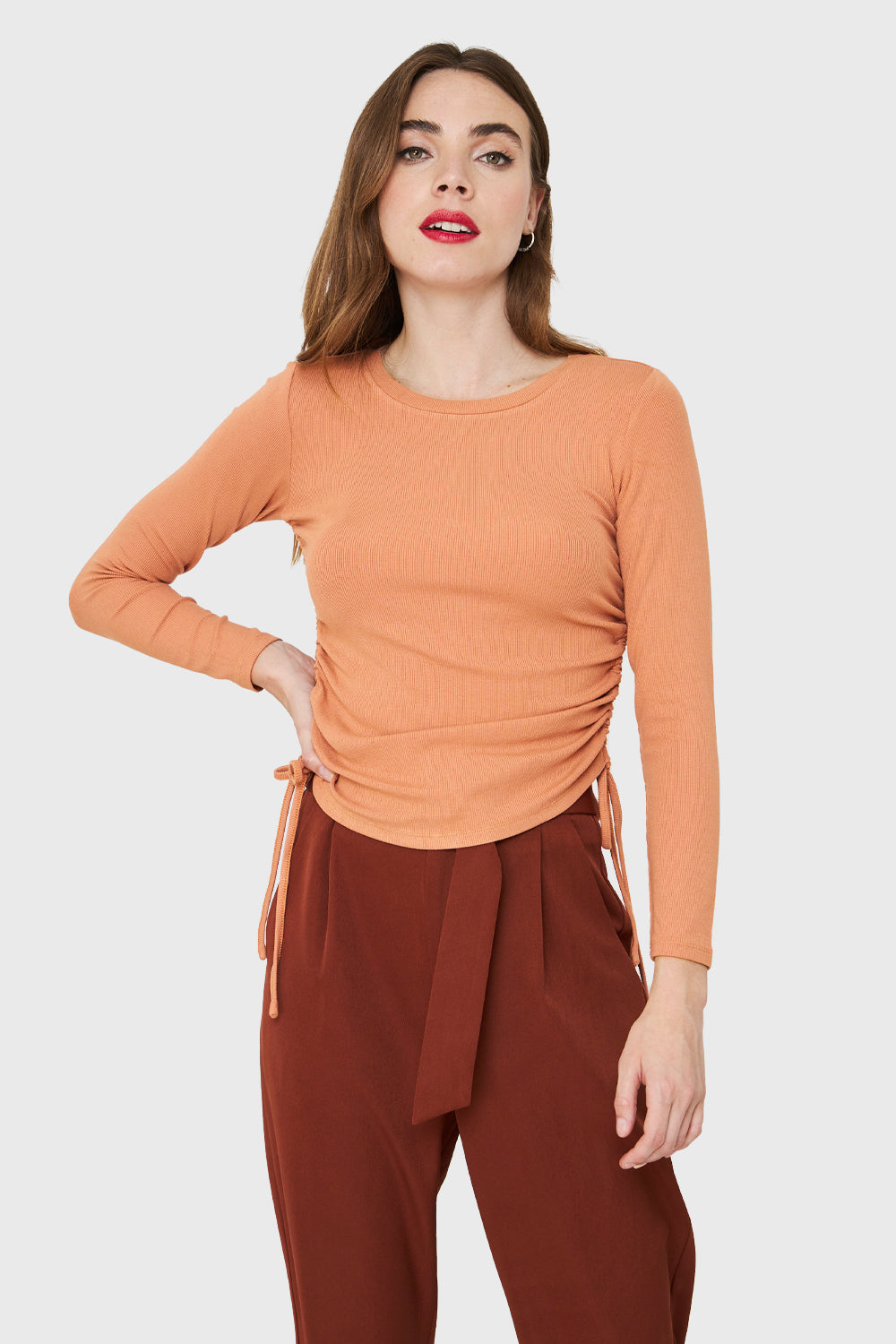 Características: Polera manga larga y cuello redondo. Con recogidos en los laterales ajustables a través de un cordón.