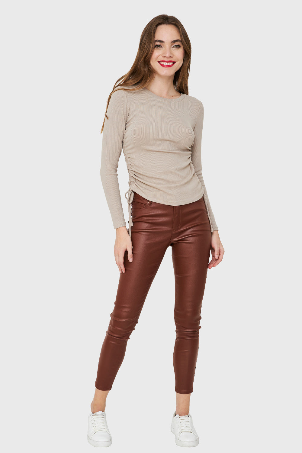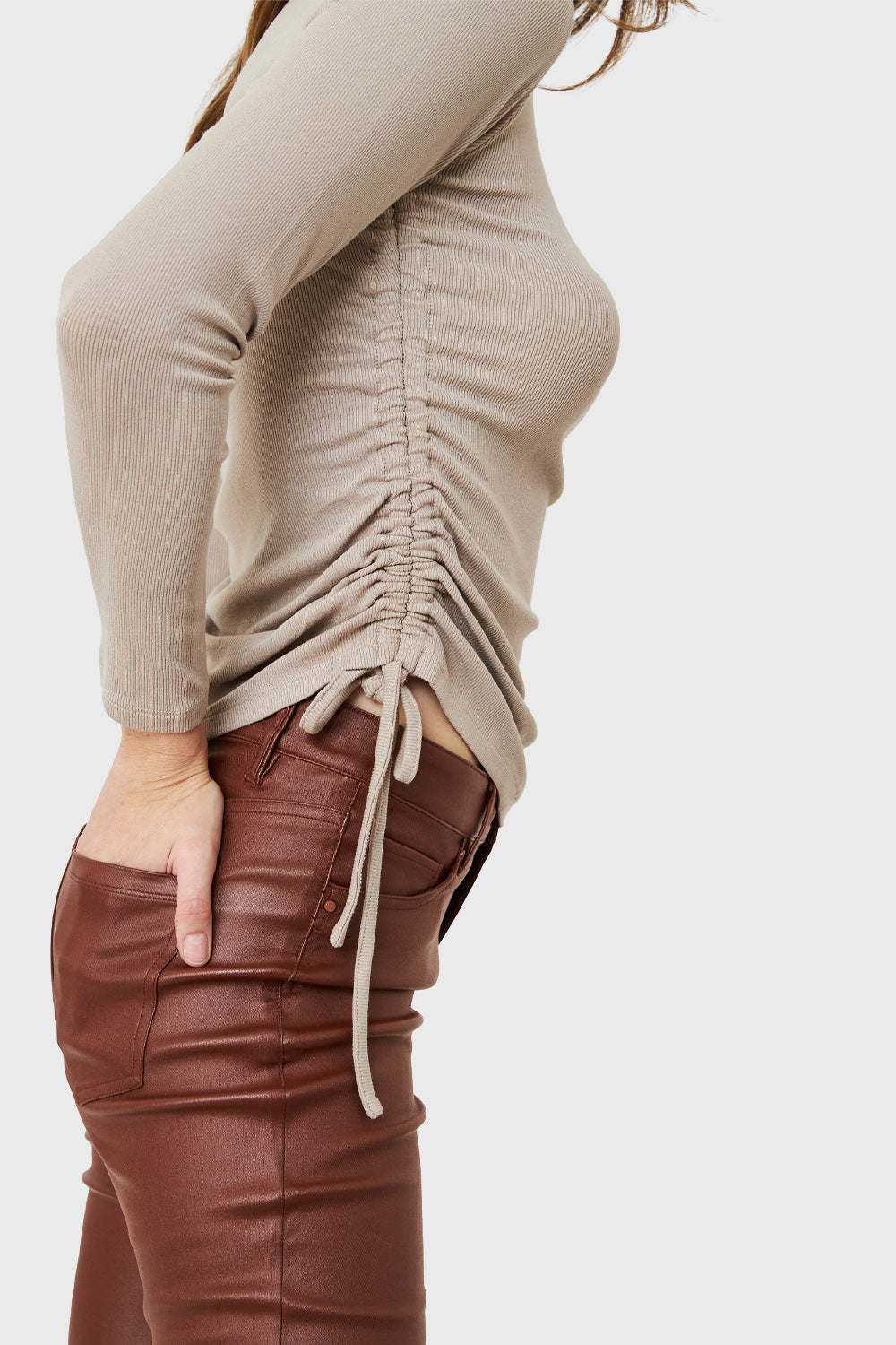 Características: Polera manga larga y cuello redondo. Con recogidos en los laterales ajustables a través de un cordón.