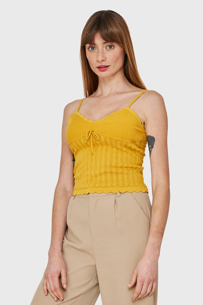 Polera Tipo Tejida Con Cinta Amarillo