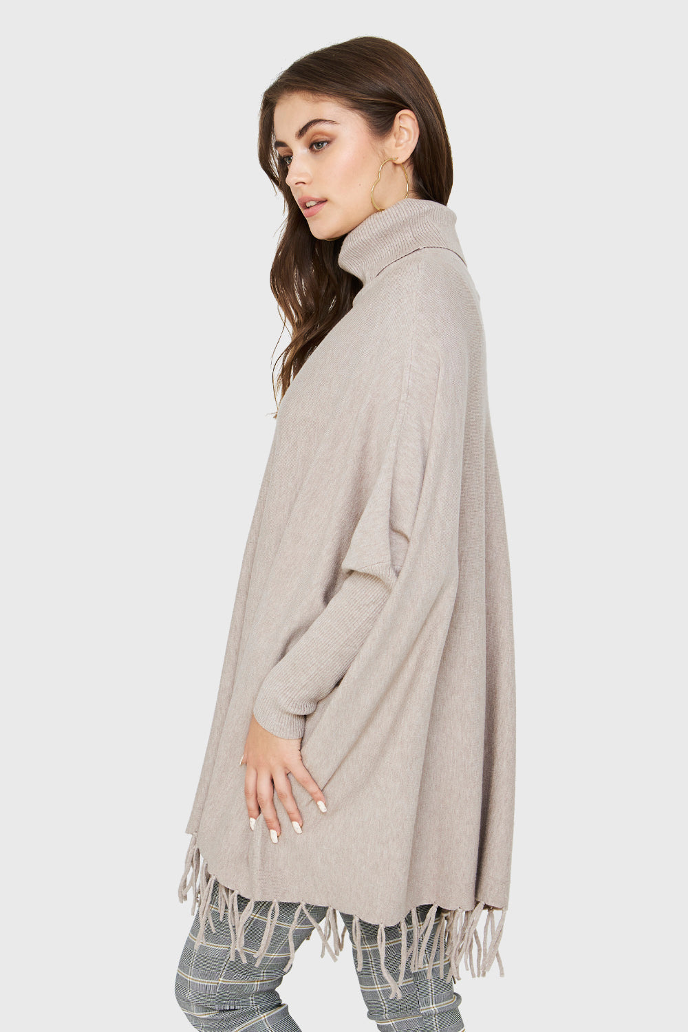 Características: Poncho de hilo, con mangas murciélago y flecos en la parte inferior. Puños ajustados. Se encuentra en dos tallas S/M y M/L.