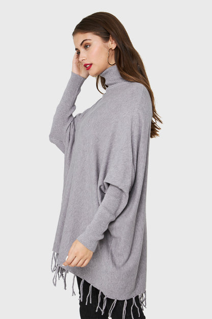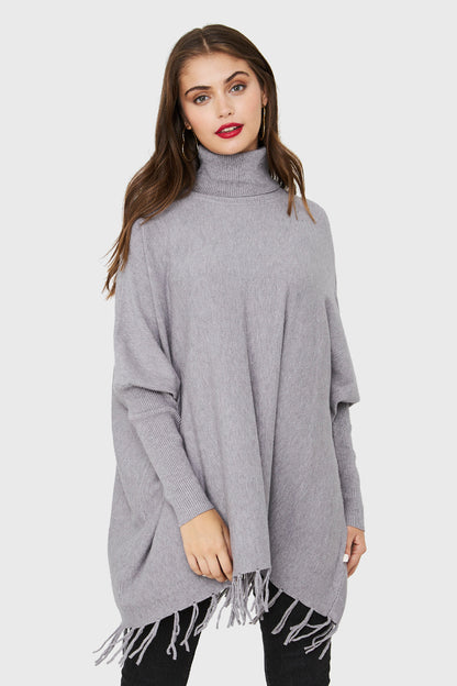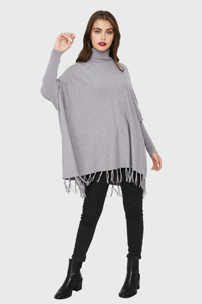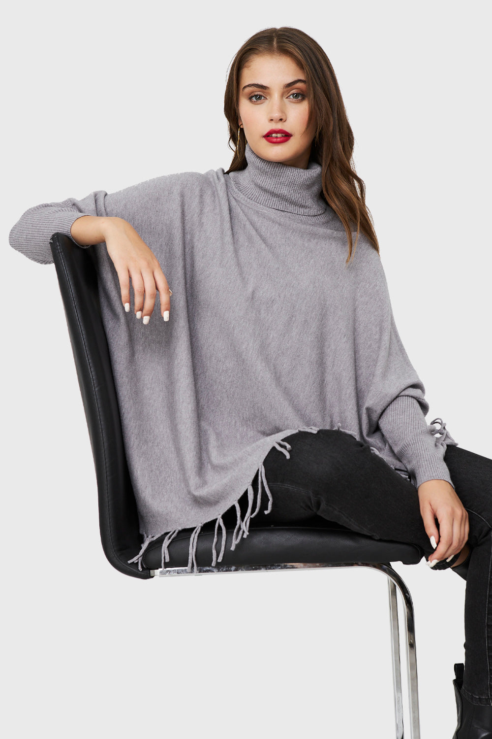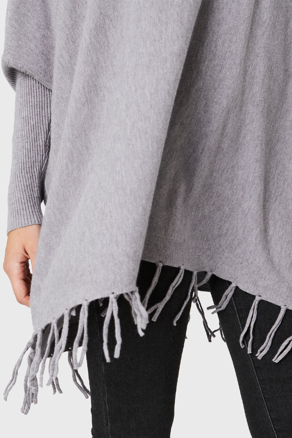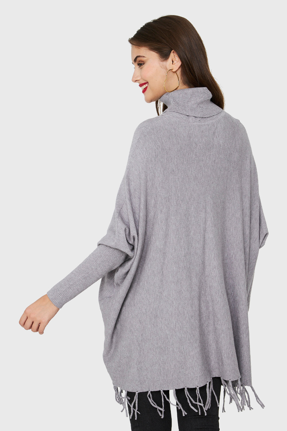 Características: Poncho de hilo, con mangas murciélago y flecos en la parte inferior. Puños ajustados. Se encuentra en dos tallas S/M y M/L.