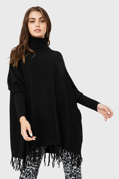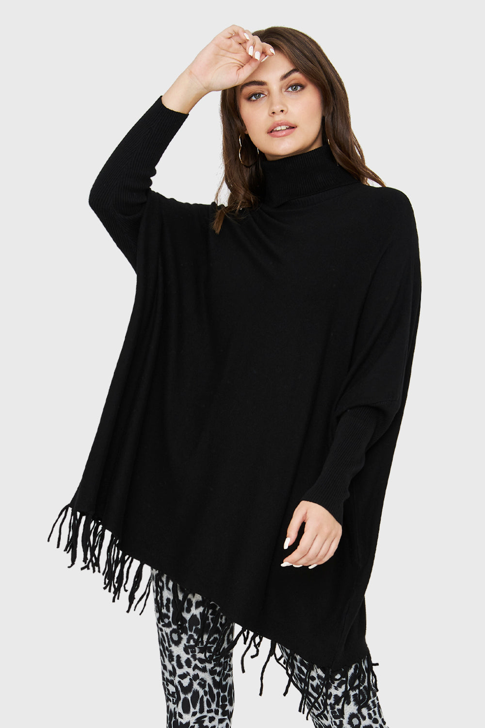 Características: Poncho de hilo, con mangas murciélago y flecos en la parte inferior. Puños ajustados. Se encuentra en dos tallas S/M y M/L.