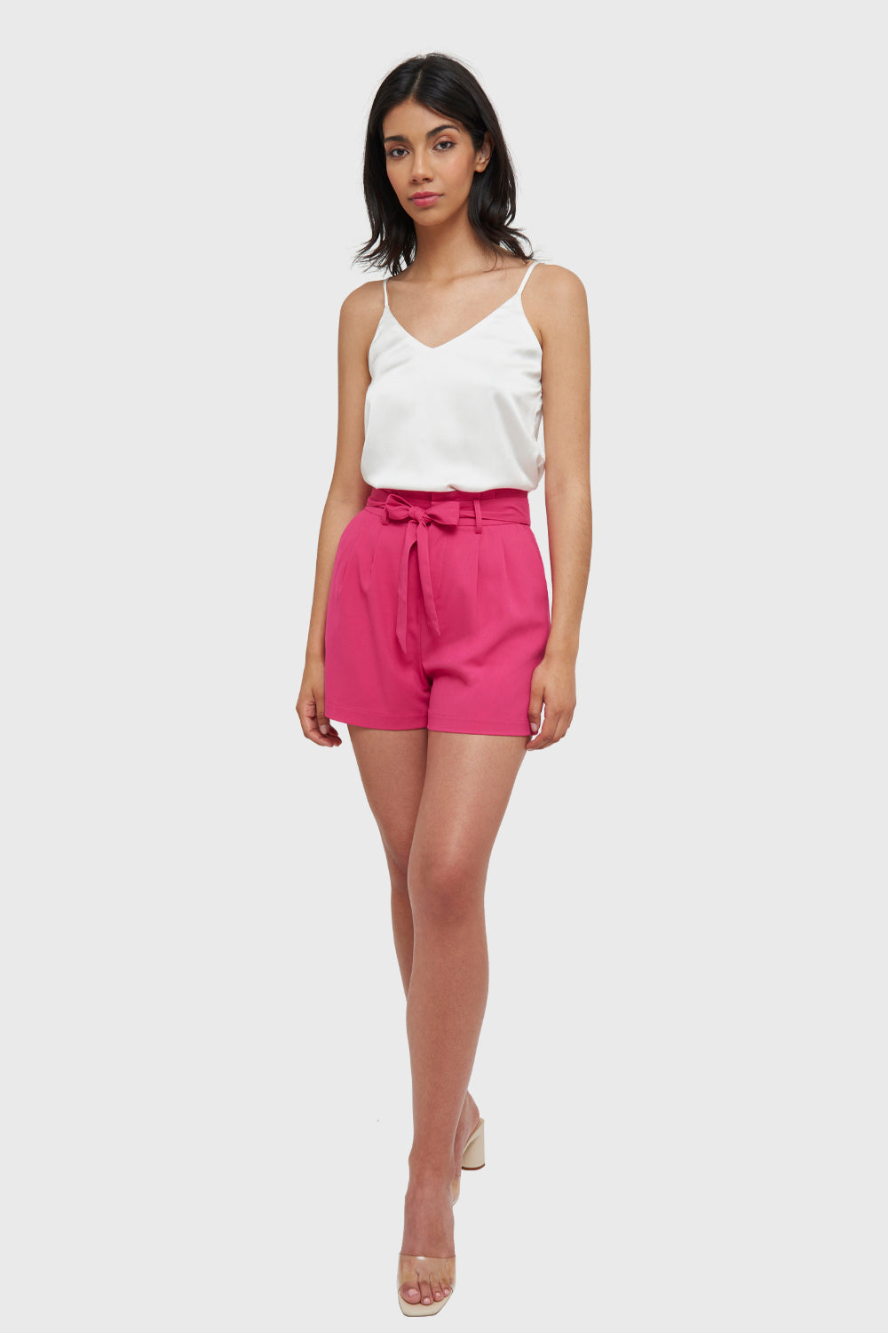 Características: Short básico con lazo en cintura para ajuste. Posee cierre, broche, pinzas y bolsillos laterales.