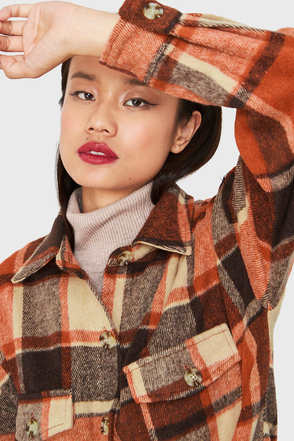 Características: CSobrecamisa larga con estampado escocés. Botonera frontal, bolsillos a los costados. Botón de ajuste en puños y bolsillos tipo cargo en el pecho. No posee forro.