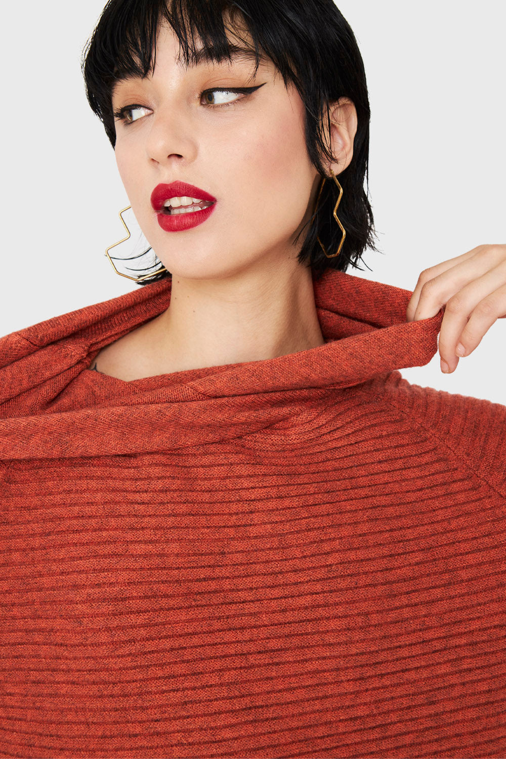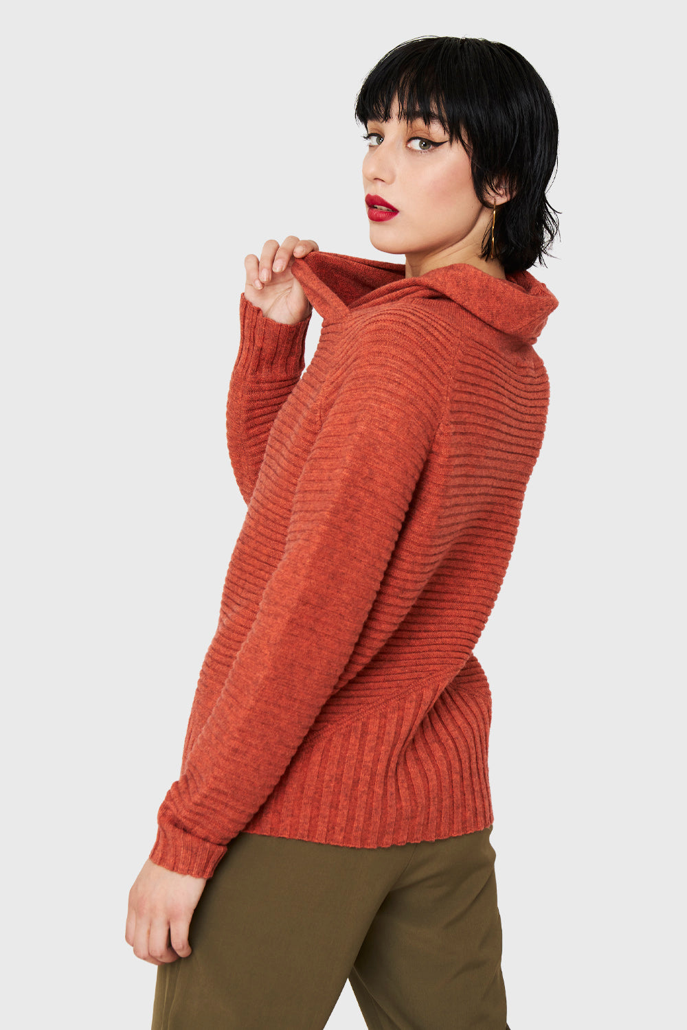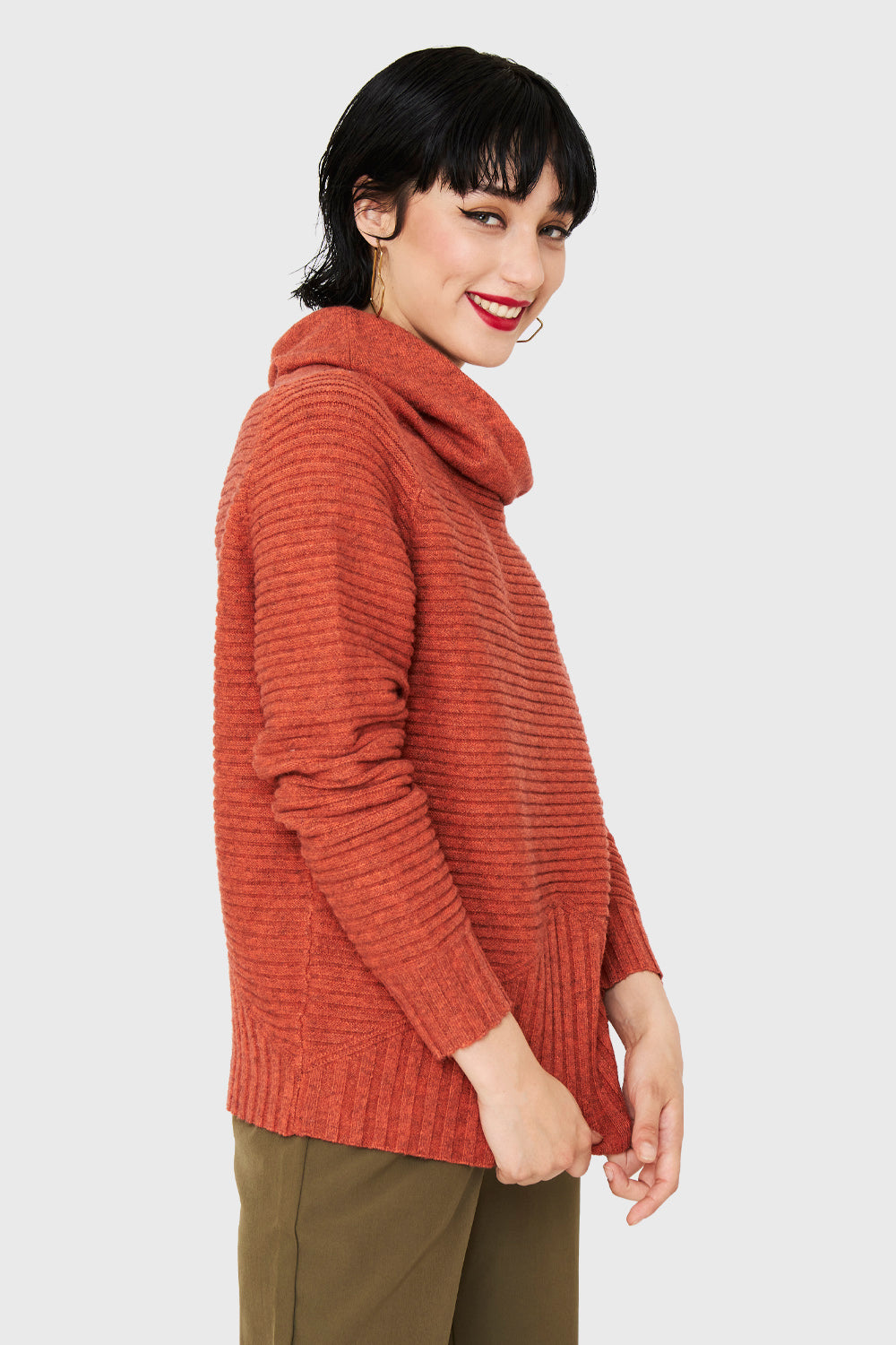 Sweater Acanalado Cuello Tortuga Naranja