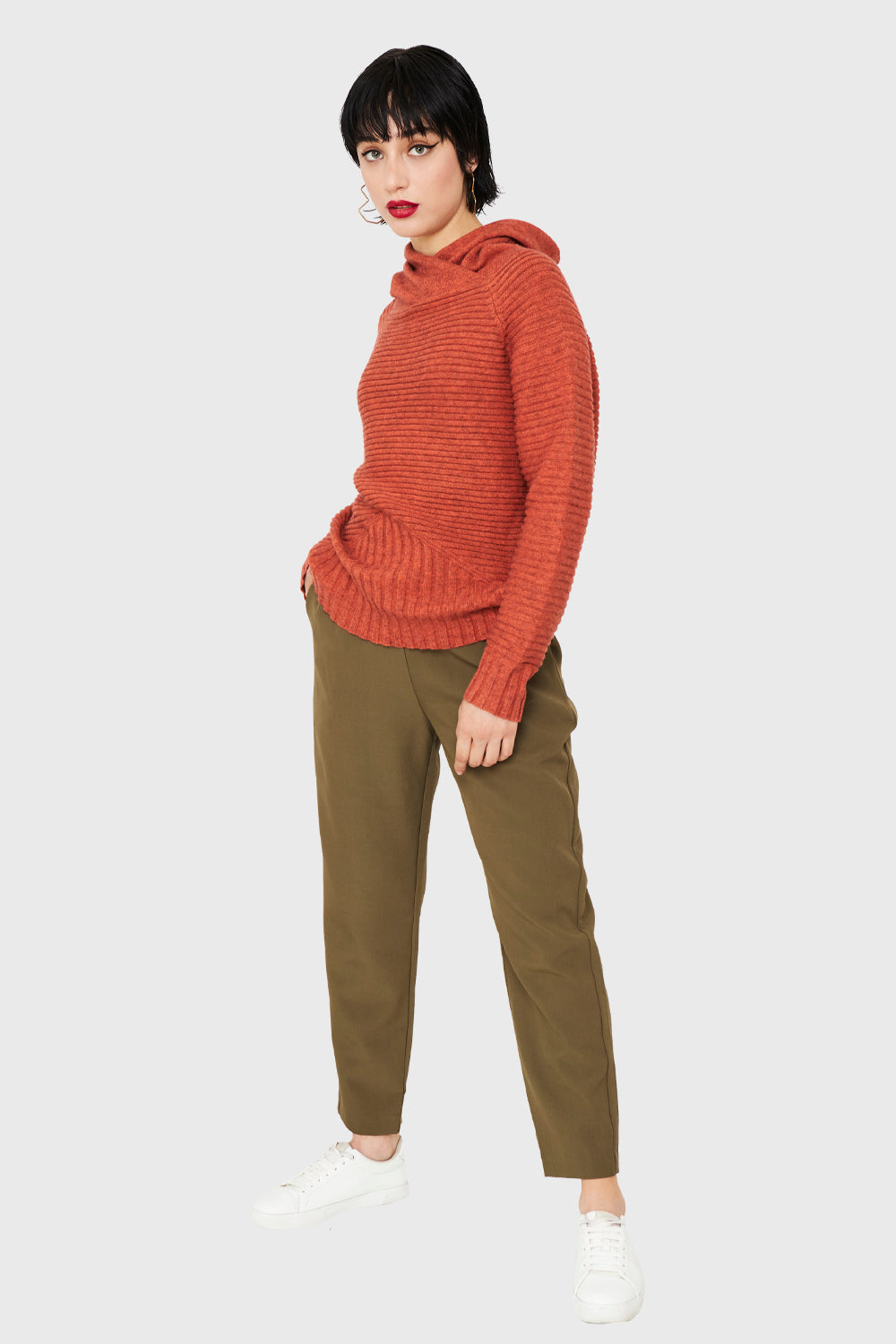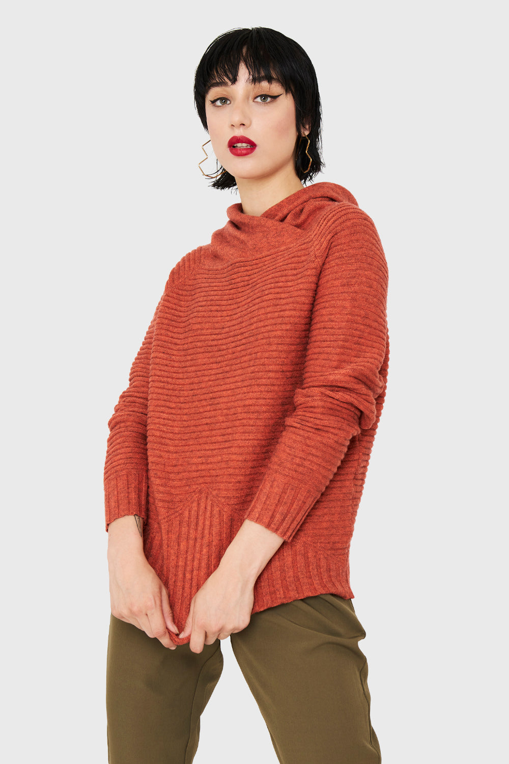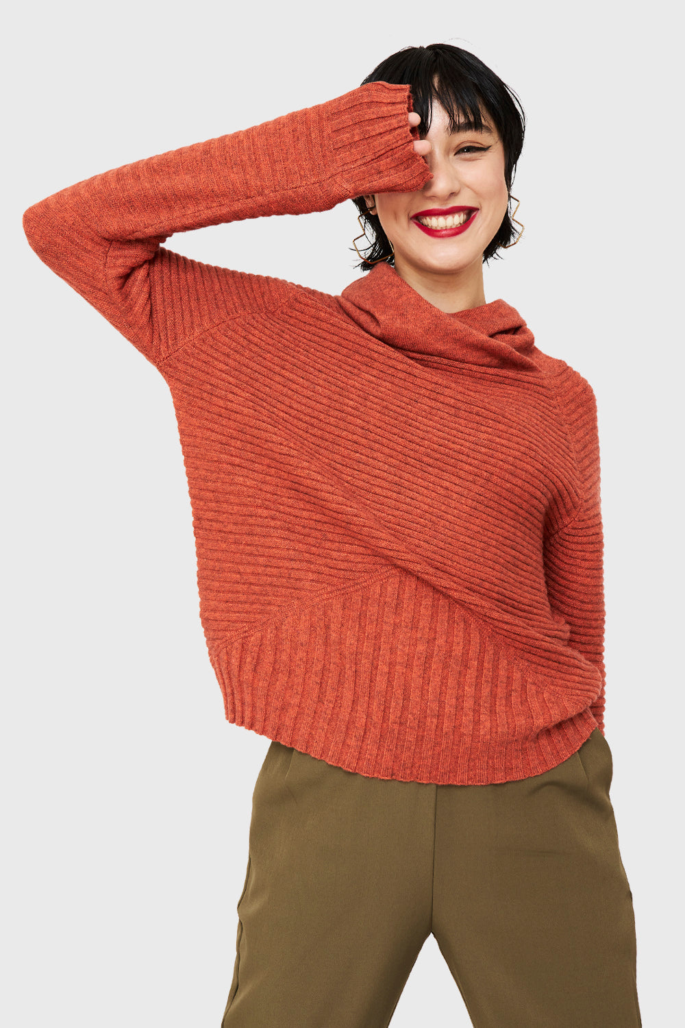 Sweater Acanalado Cuello Tortuga Naranja