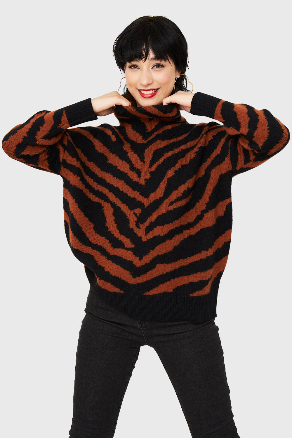 Sweater Atigrado Cuello Alto Óxido