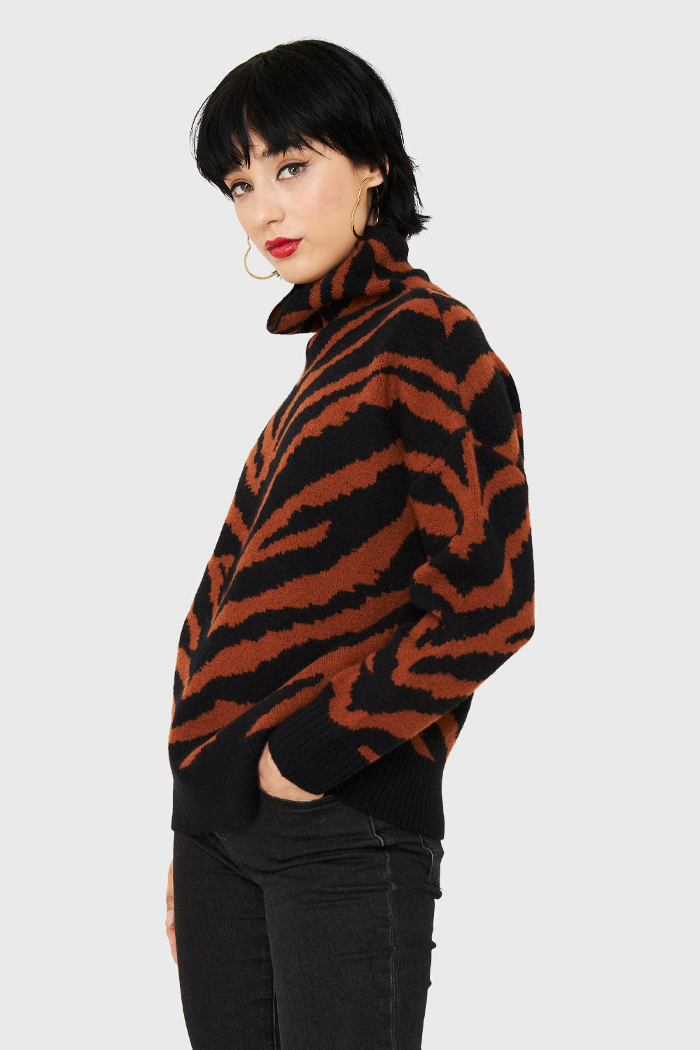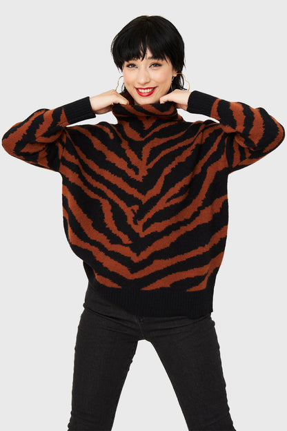 Características: Sweater atigrado cuello alto.