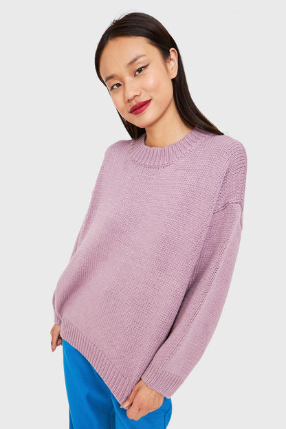 Características: Sweater básico holgado con mangas tipo globo. Cuello redondo, pretina en la parte baja y puños.