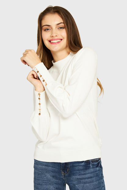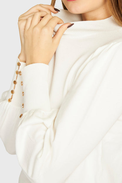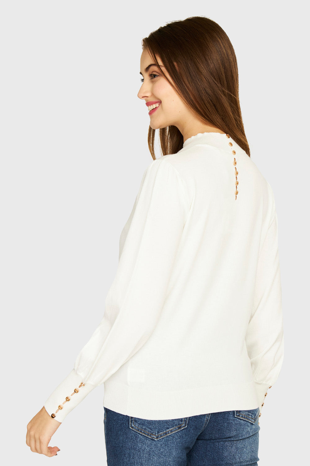 Características: Sweater básico cuello tortuga. Botones decorativos en mangas y espalda.