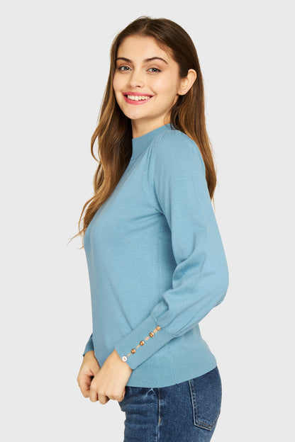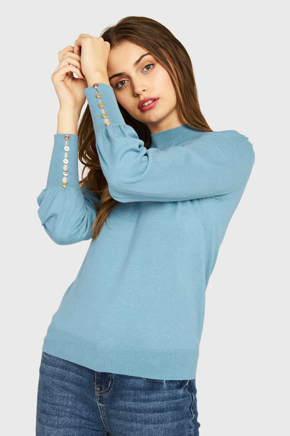 Características: Sweater básico cuello tortuga. Botones decorativos en mangas y espalda.