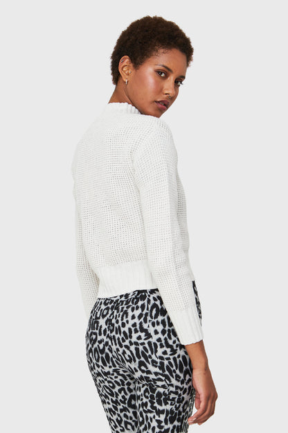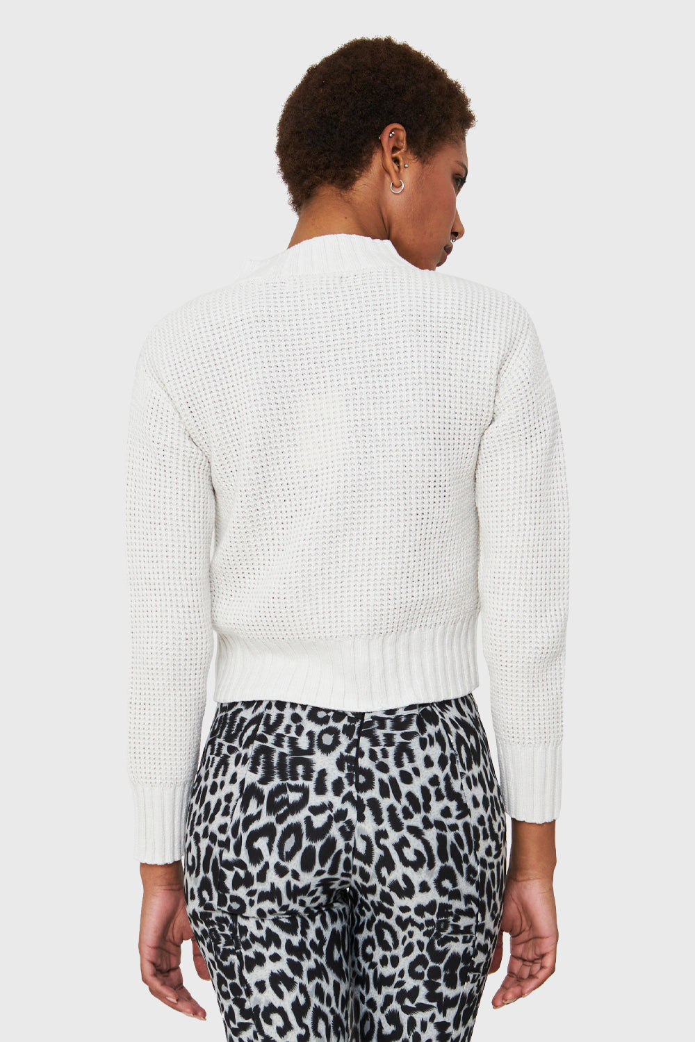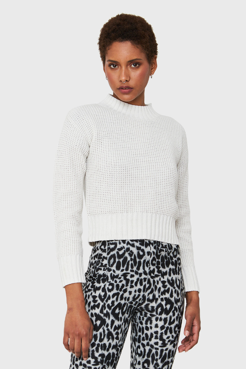 Características: Sweater crop con pretina en cuello, basta y puños. Cuello redondo.