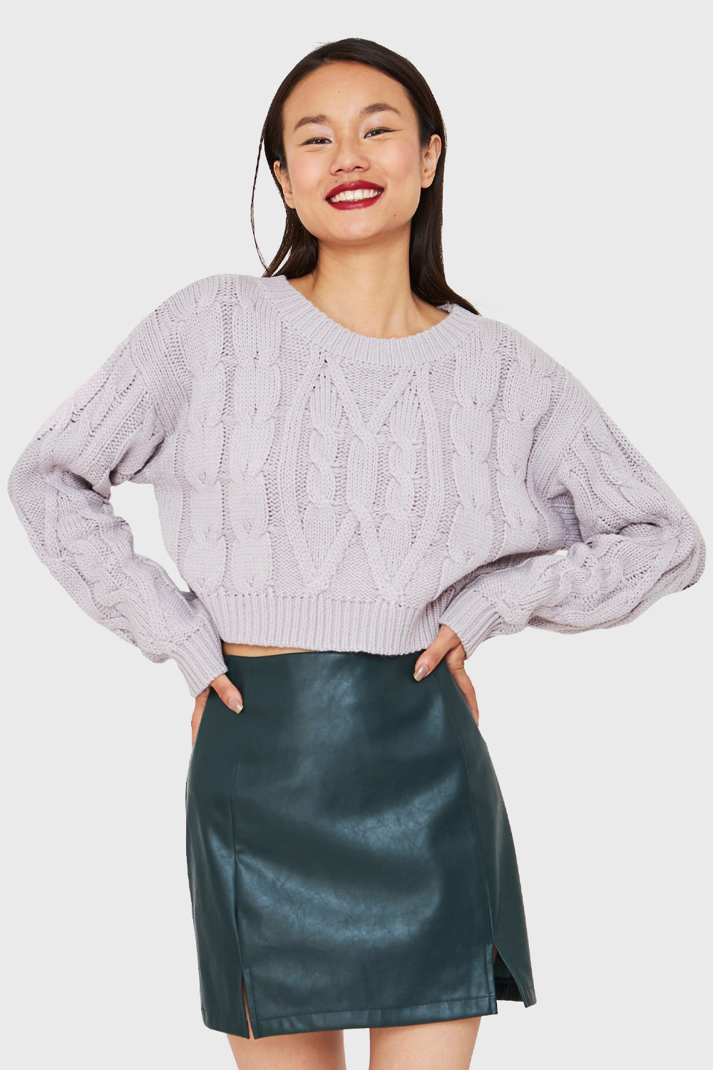 Características: Sweater crop patrón trenzado y cuello redondo. Pretina en puños y parte baja.