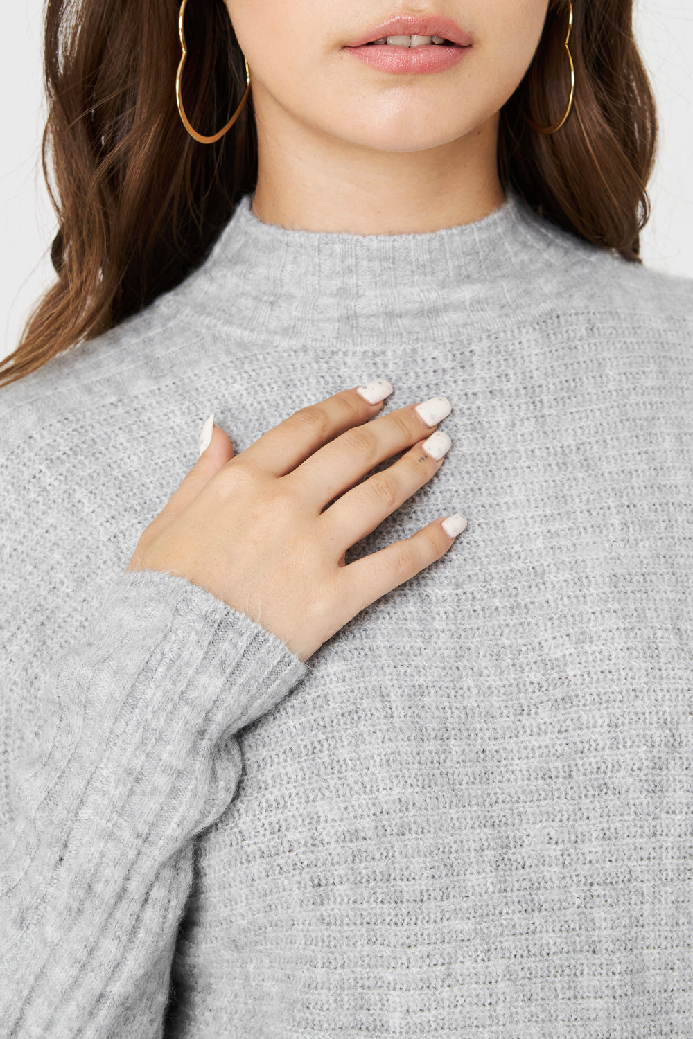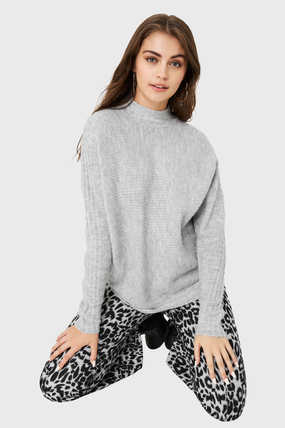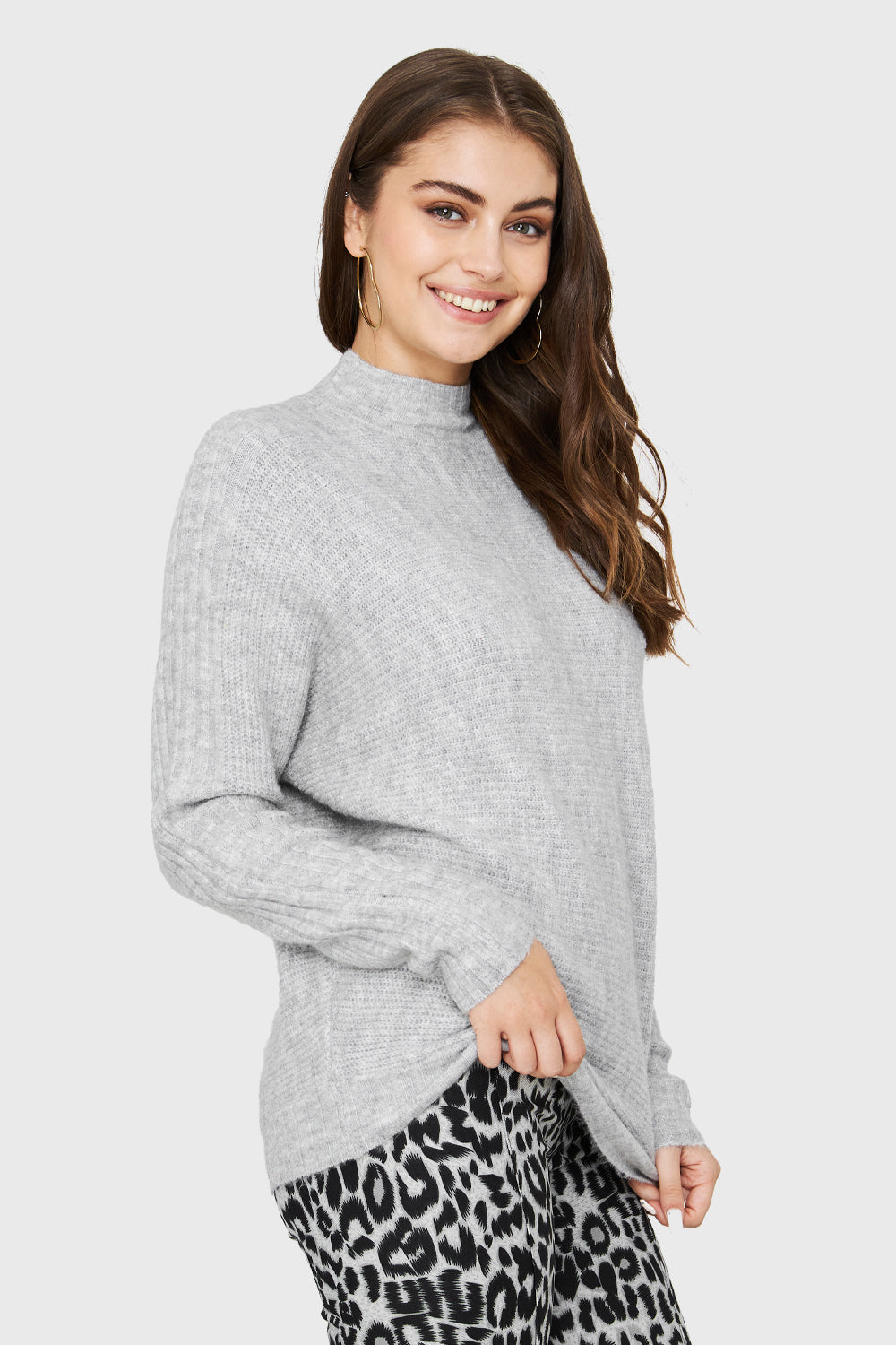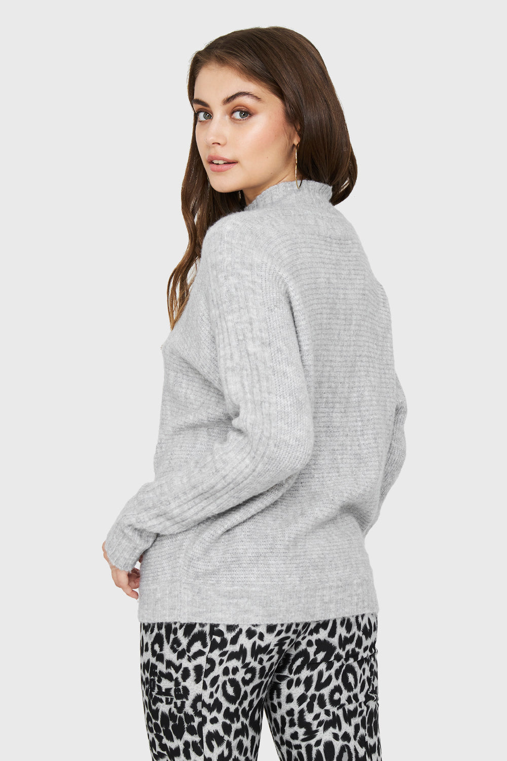 Características: Sweater básico cuello alto con detalles acanalados en distintos tamaños en el dorso, mangas y puños.