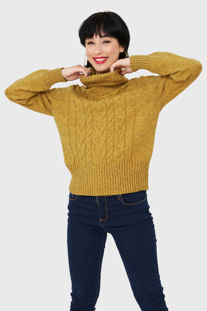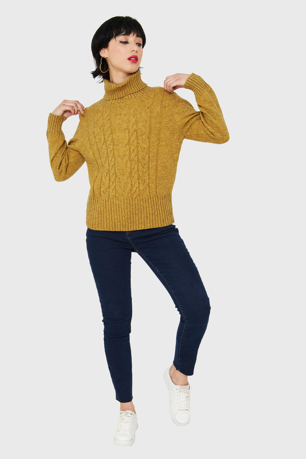 Características: Sweater cuello alto con trenzas en la parte frontal.