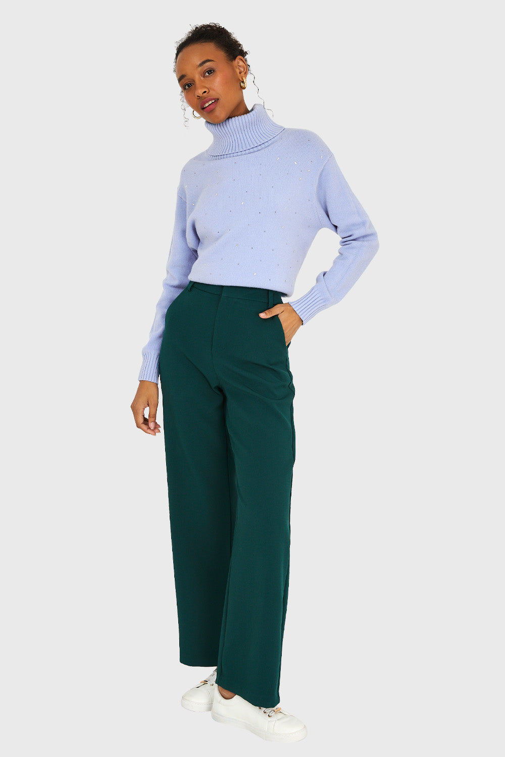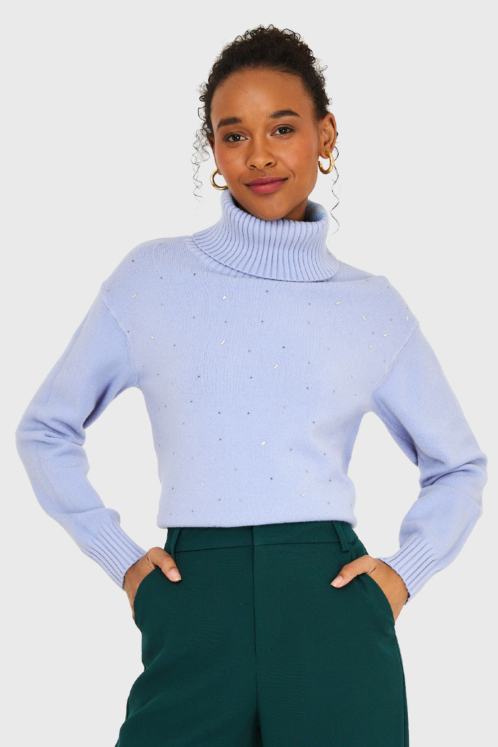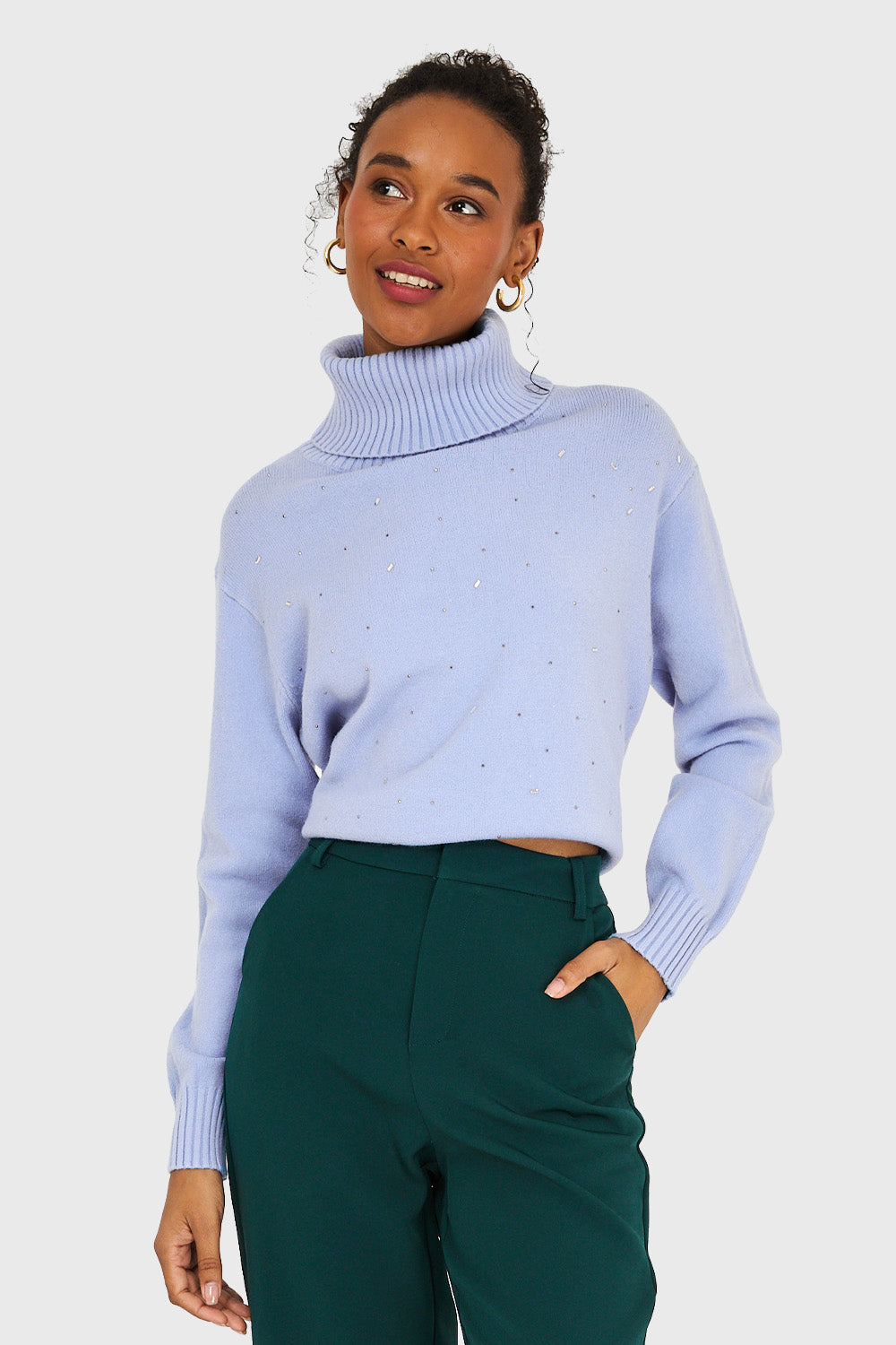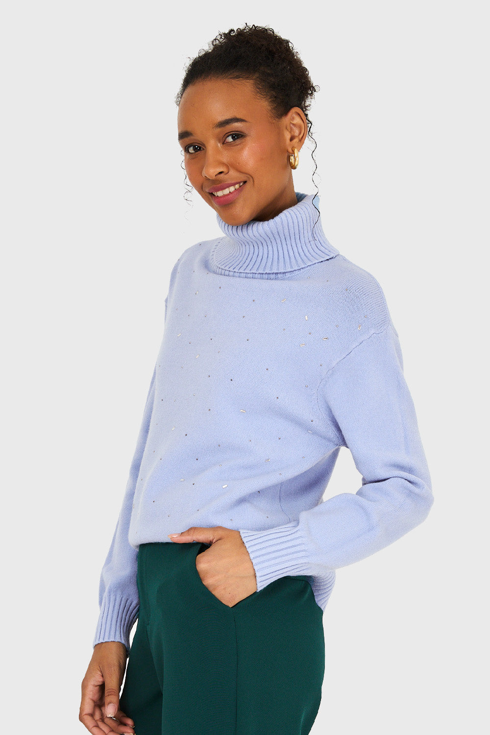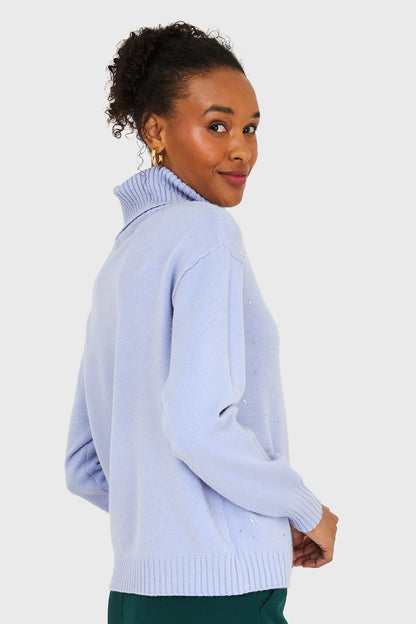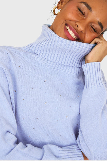 Sweater Cuello Beatle Strass Celeste