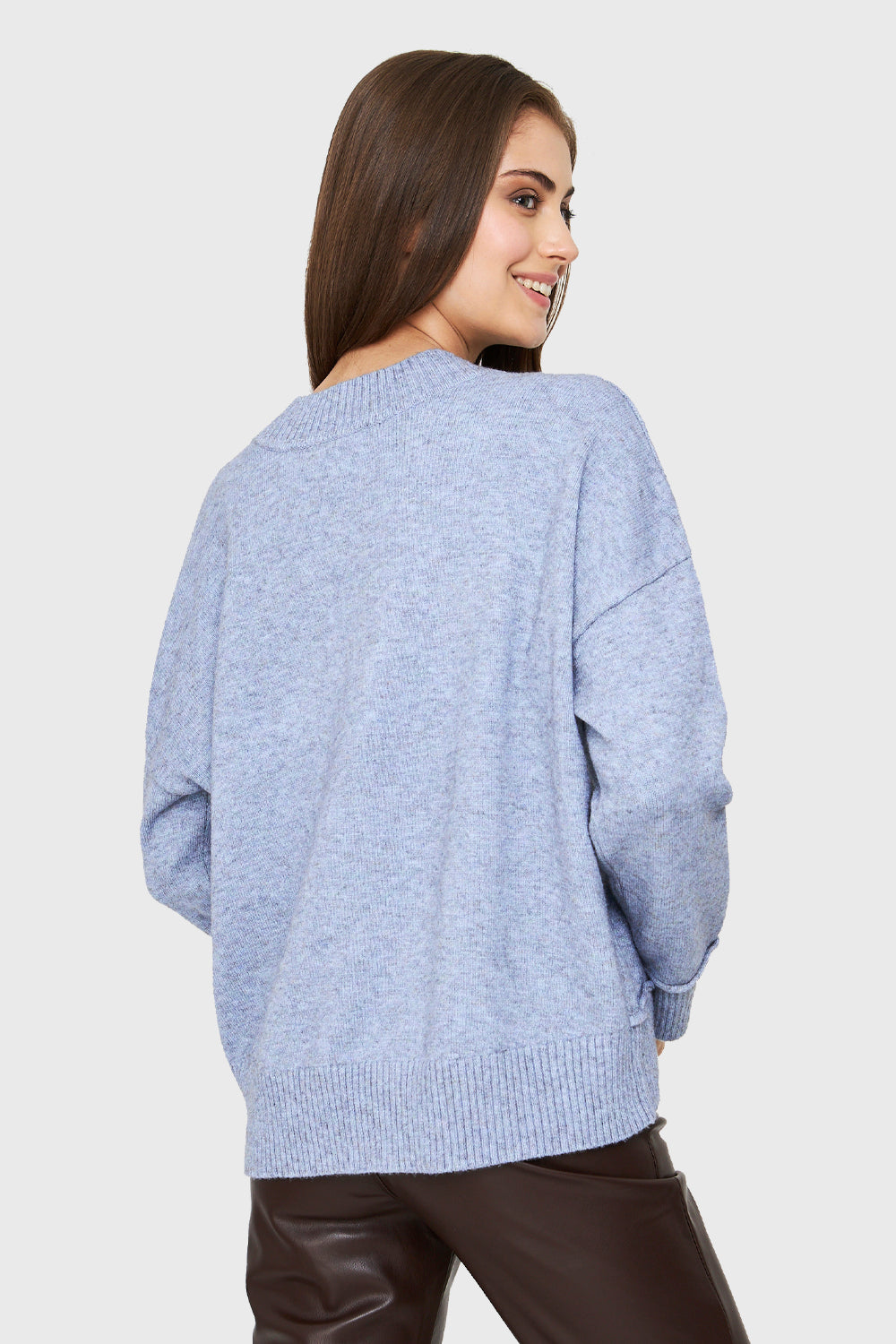 Características: Sweater cuello V profundo. Más largo en la parte posterior. Detalle en puños y parte baja.