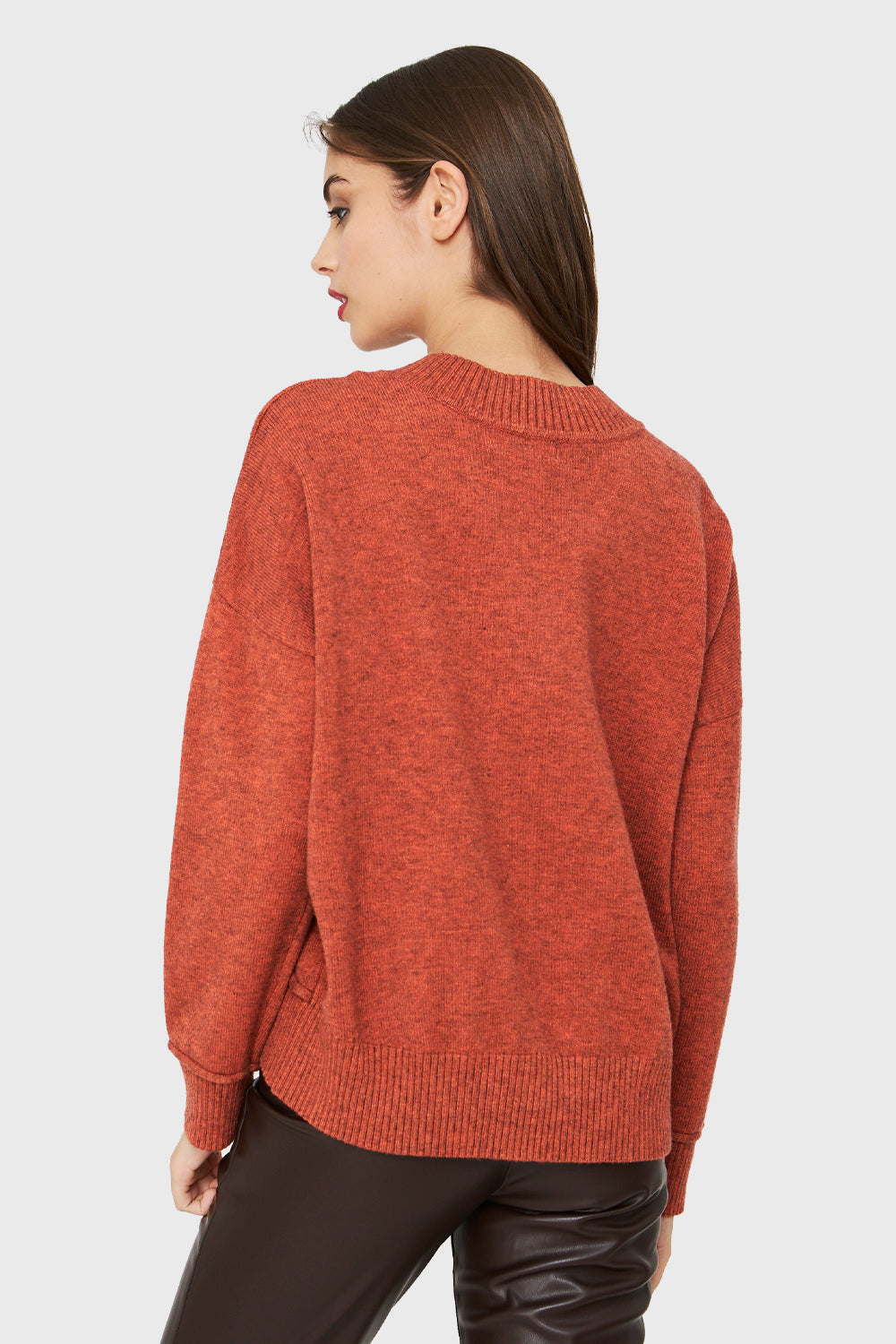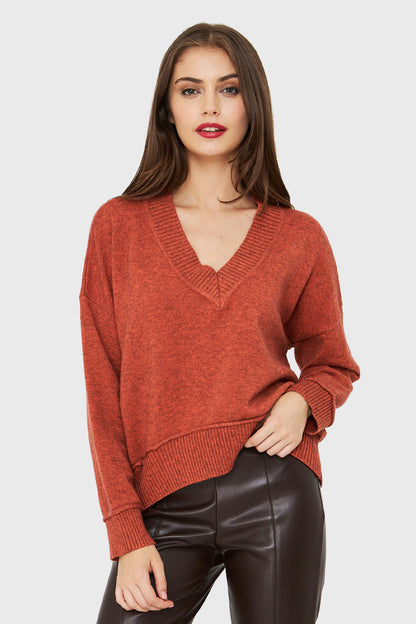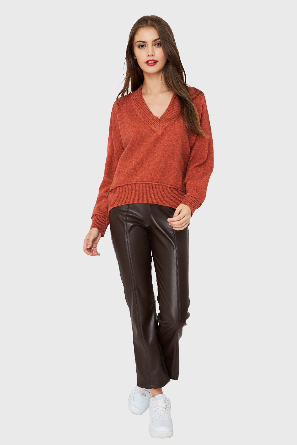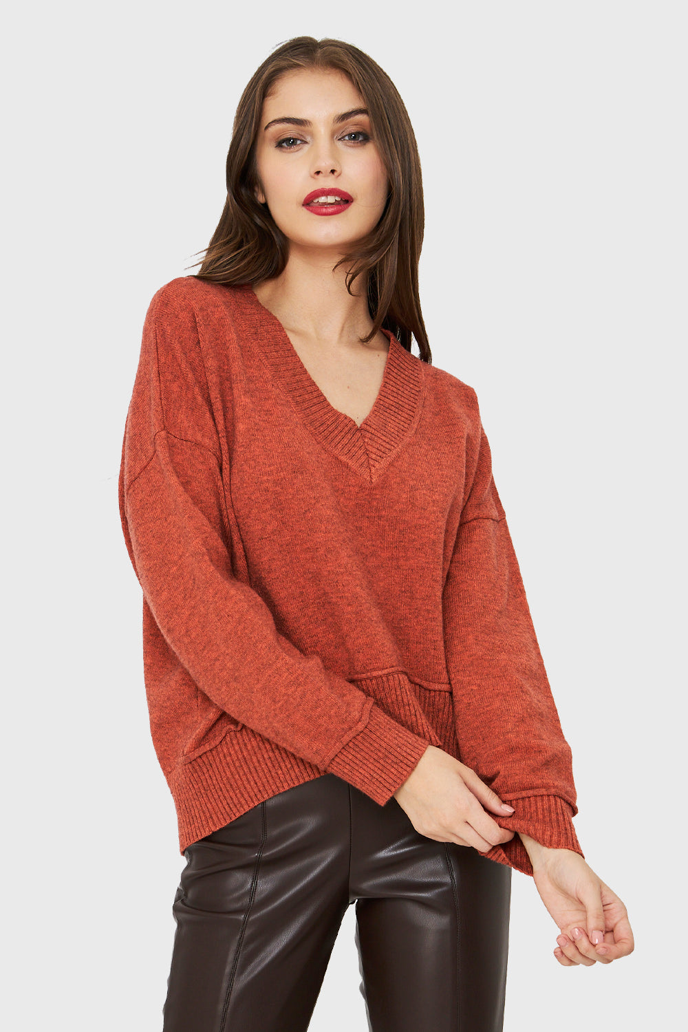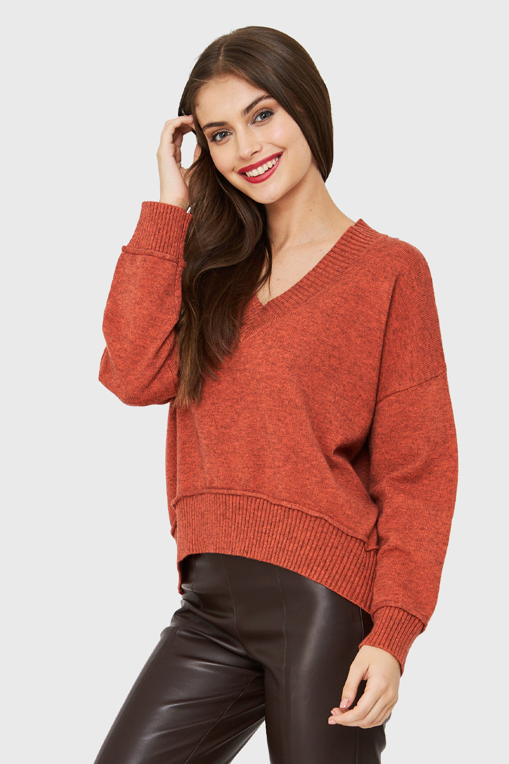 Características: Sweater cuello V profundo. Más largo en la parte posterior. Detalle en puños y parte baja.