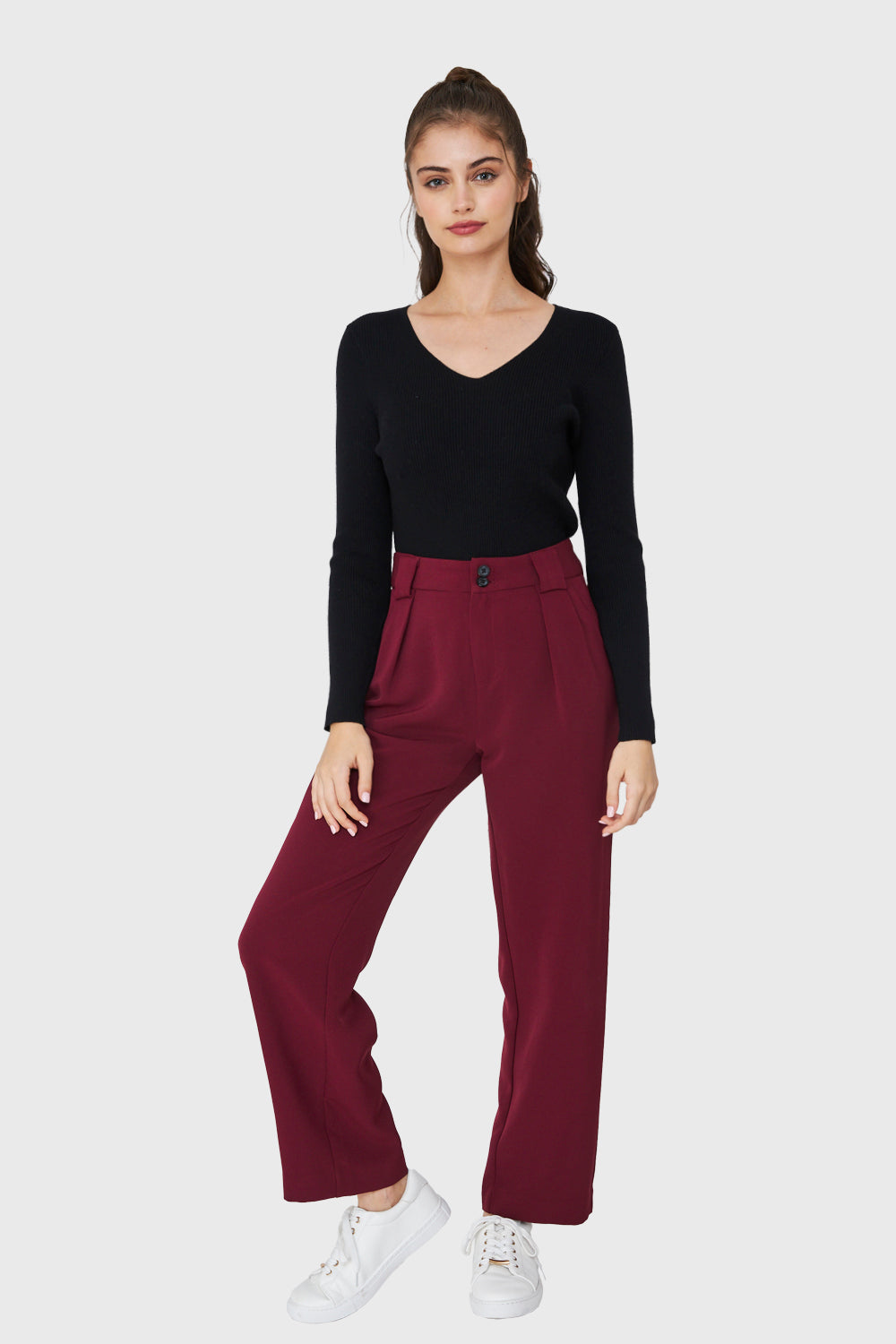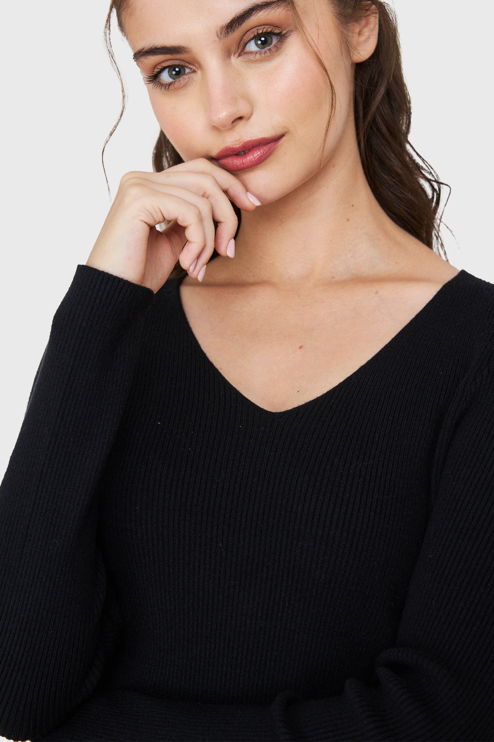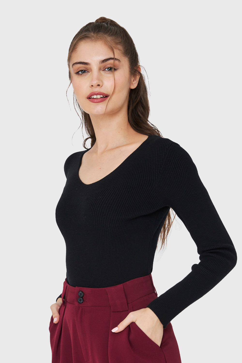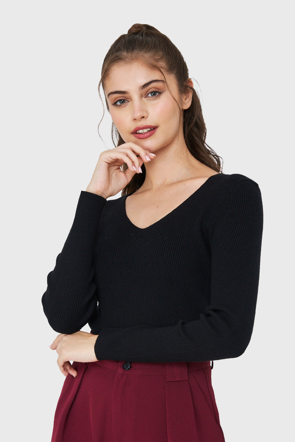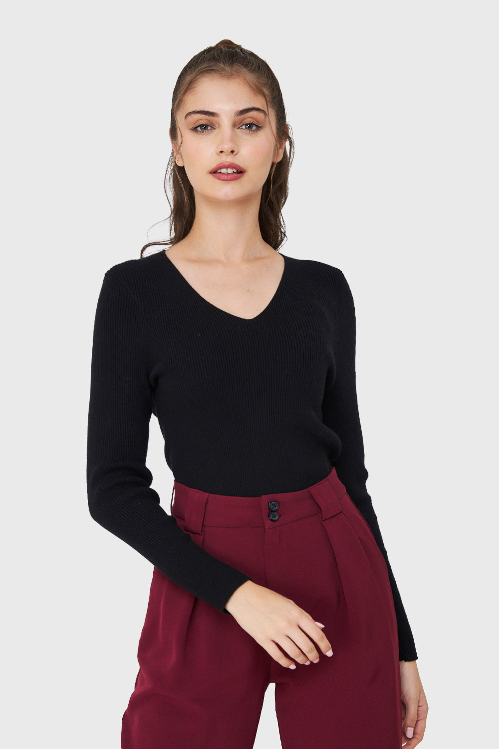 Características: Sweater de punto acanalada cuello V.