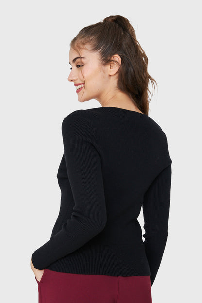 Sweater De Punto Acanalada V Negro