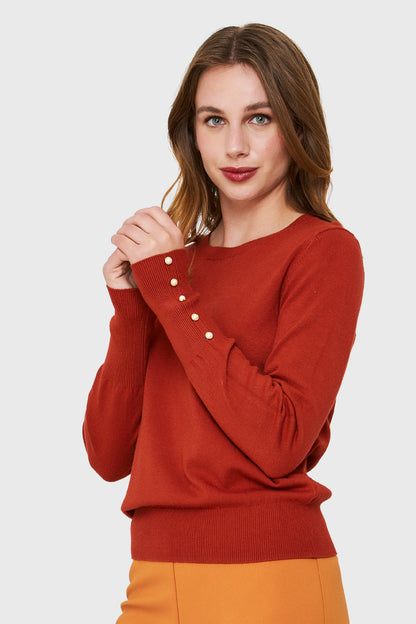 Características: Sweater manga larga con perlas decorativas en puños. Cuello redondo. Pretina en cuello, puños y basta.