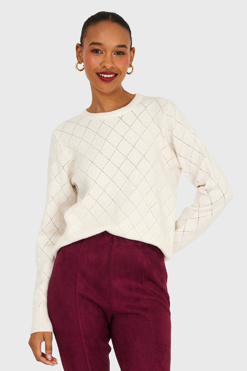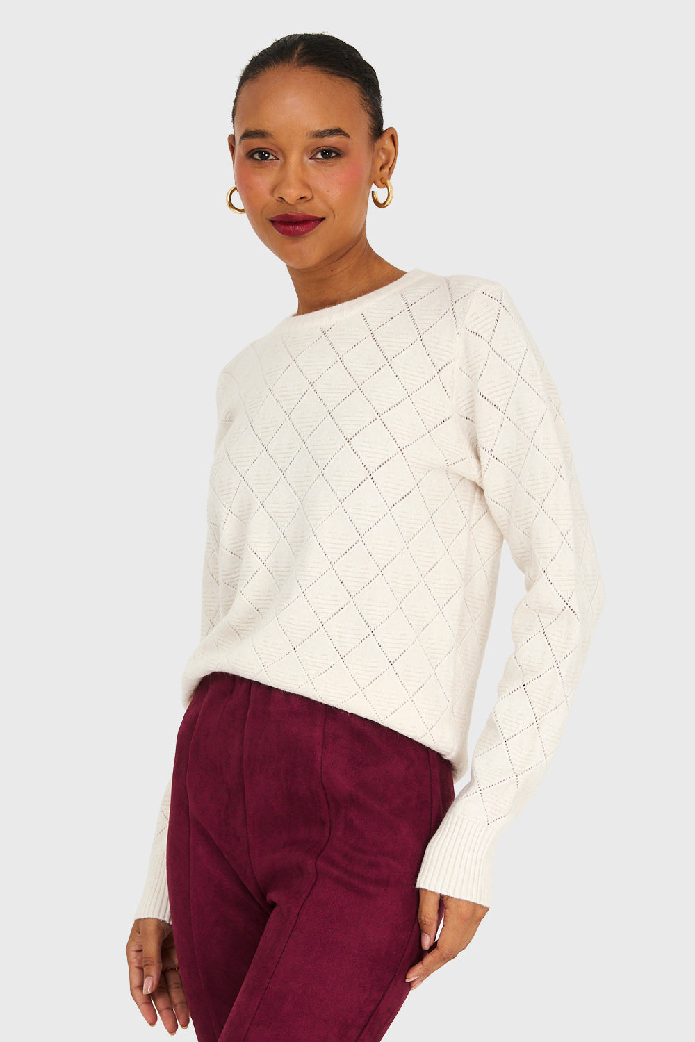 Sweater Diseño Rombos Blanco Invierno