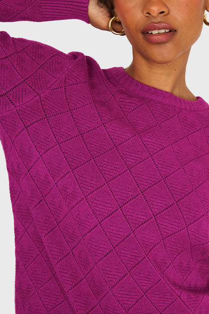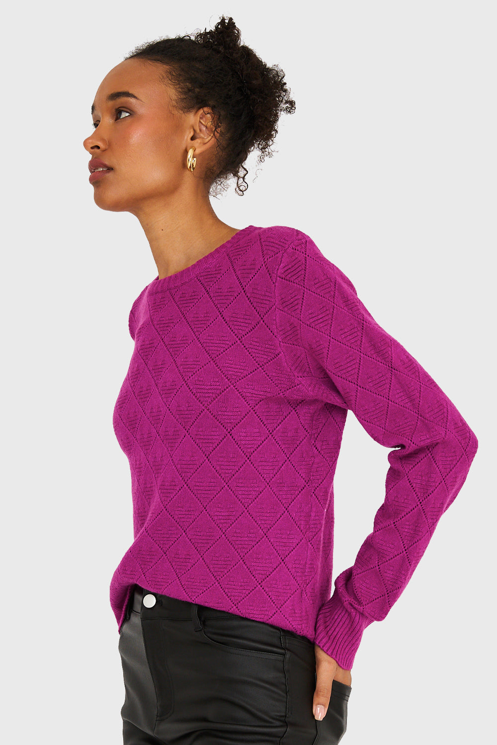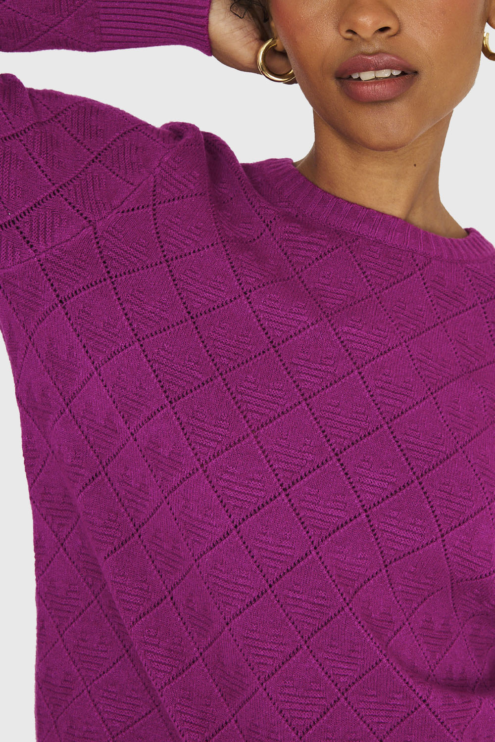 Características: Sweater de punto con diseño de rombo. Pretina en cuello, puños y basta.