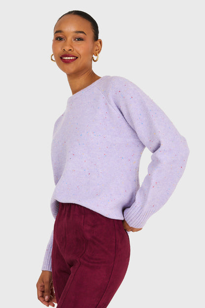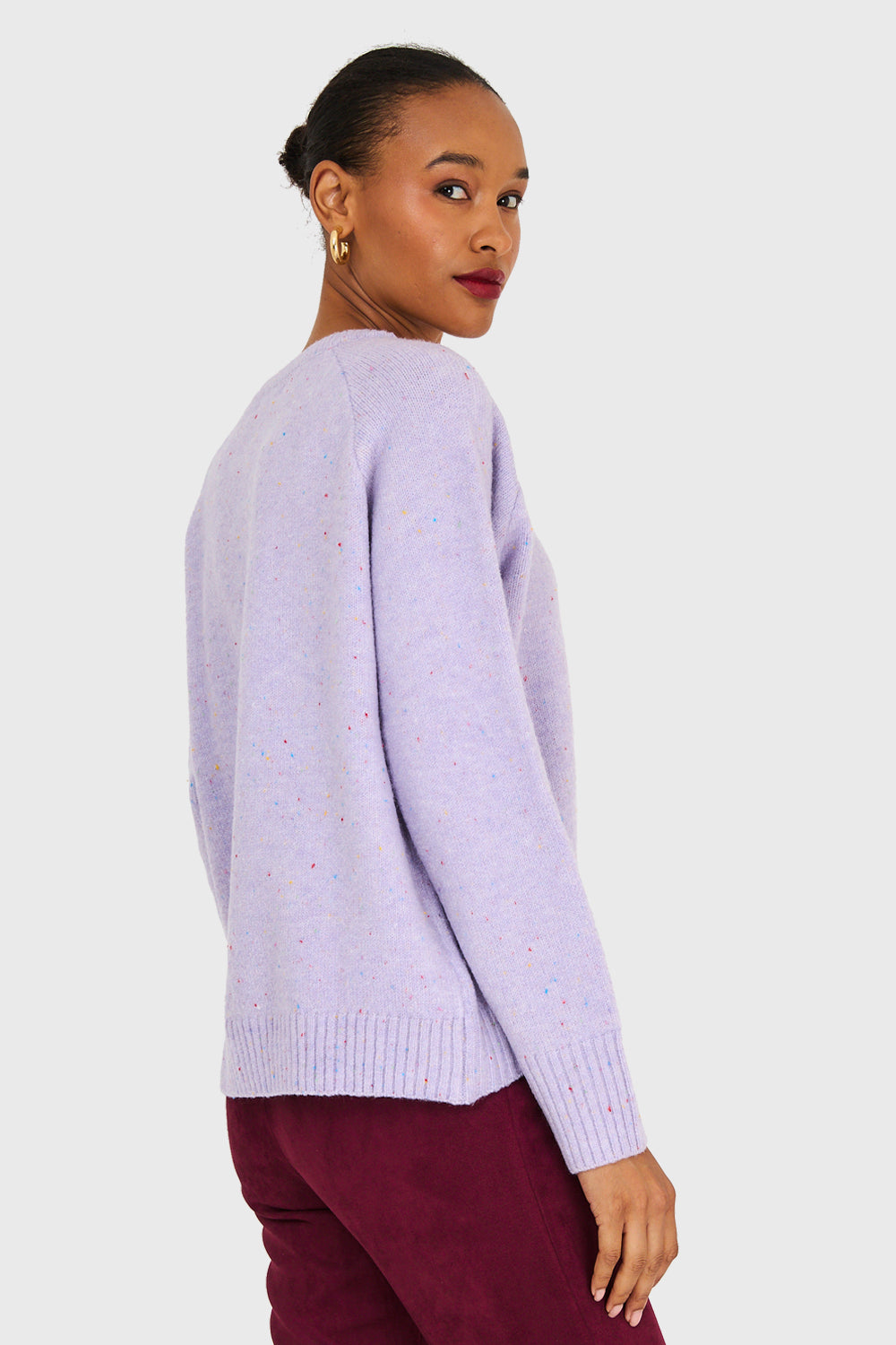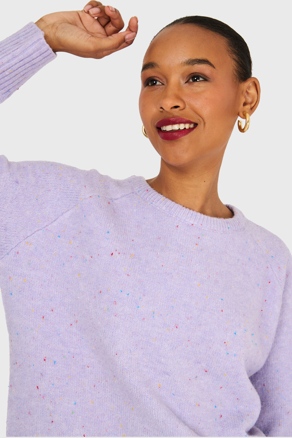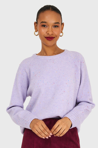 Características: Sweater diseño puntitos de colores. Manga raglán. Pretina en cuello, puños y basta. Es más larga la parte trasera que delantera.