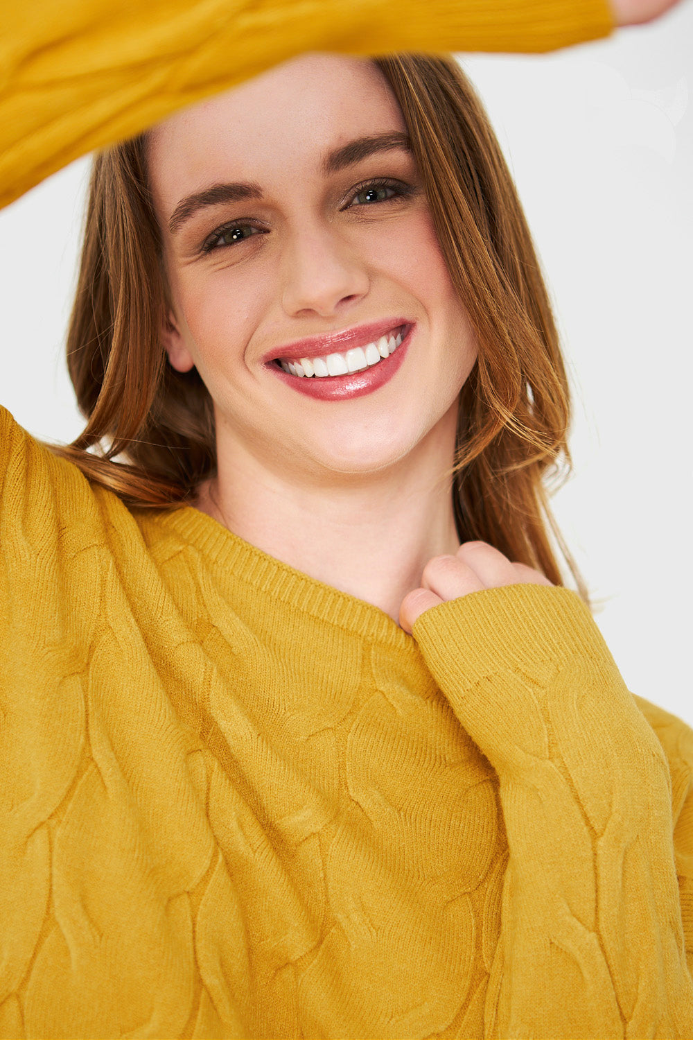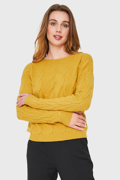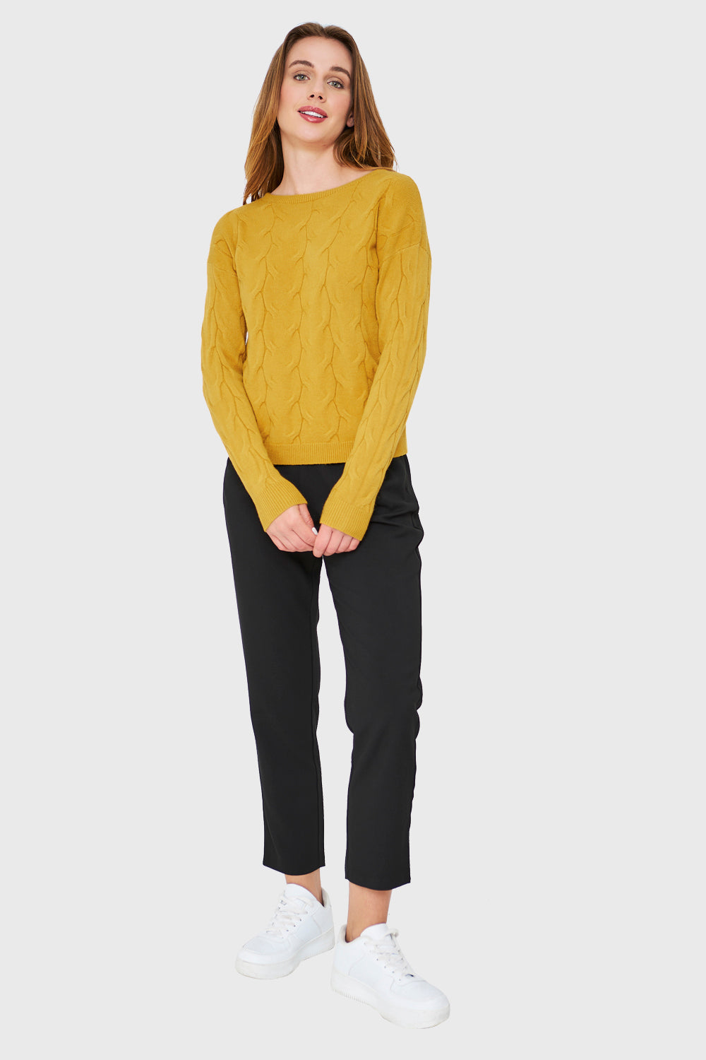 Características: Sweater de punto trenzado en la parte delantera y mangas.