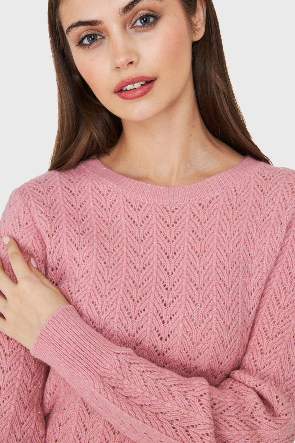 Características: Sweater punto fantasía lurex calado con cuello redondo.